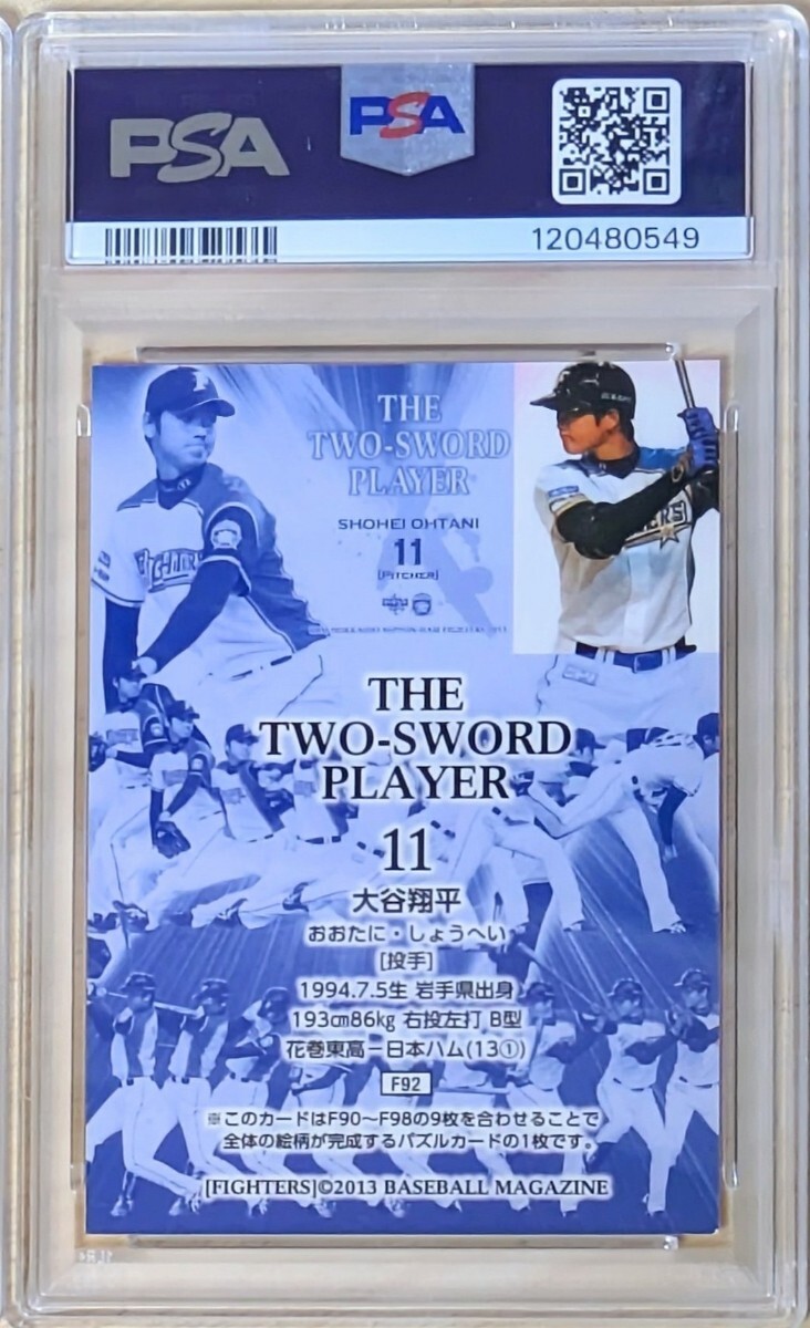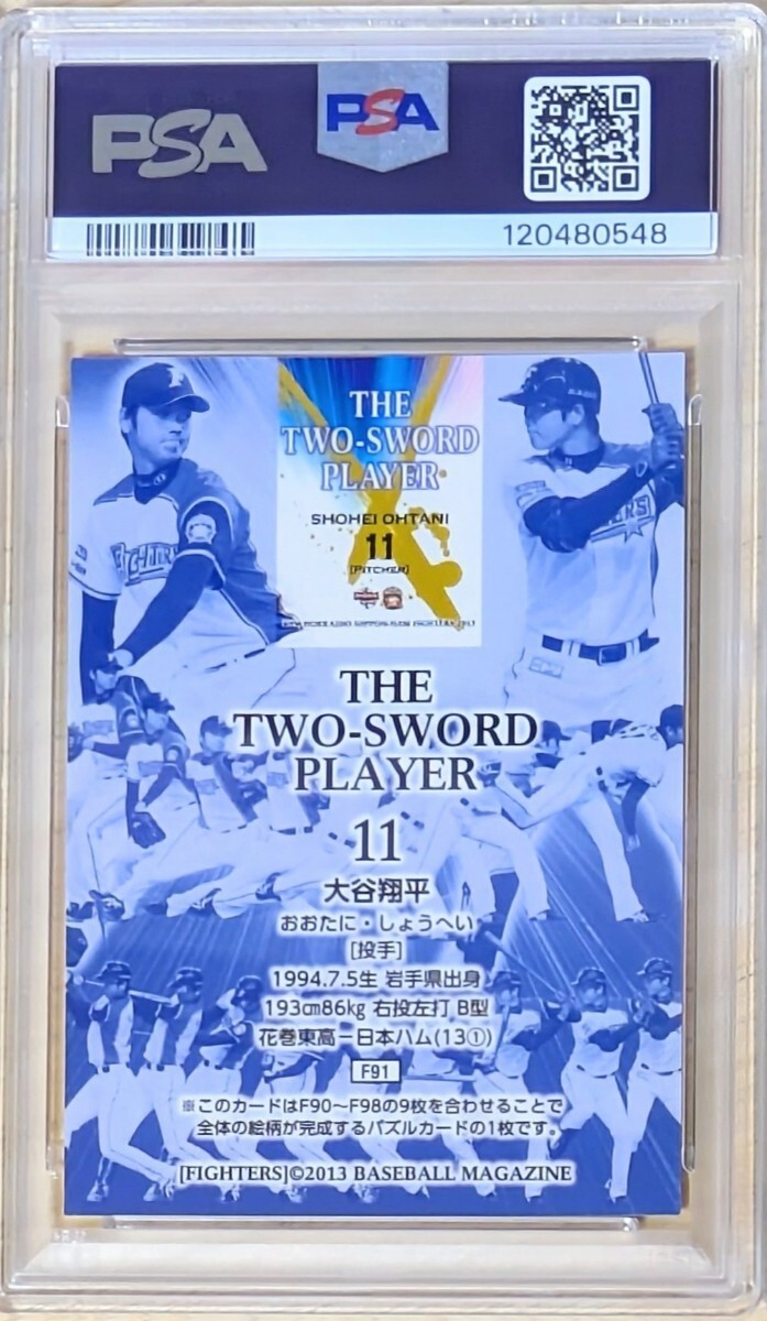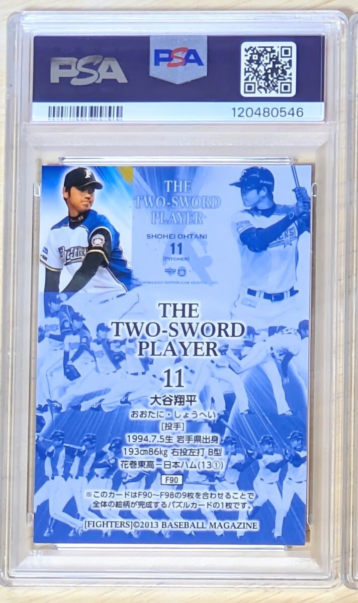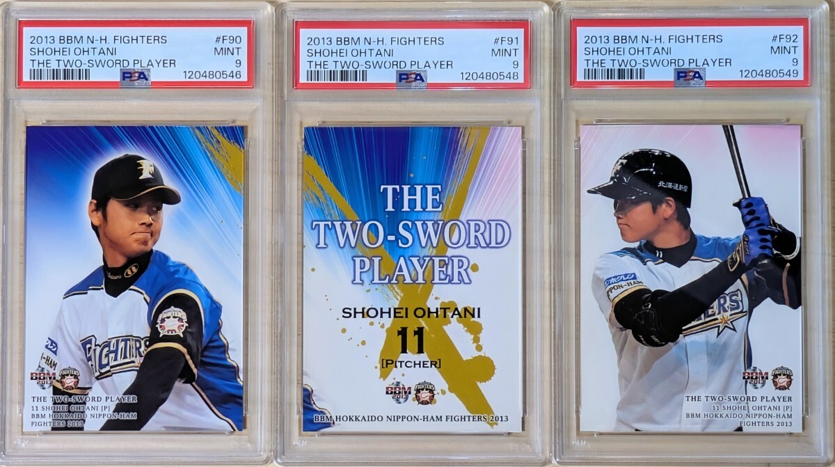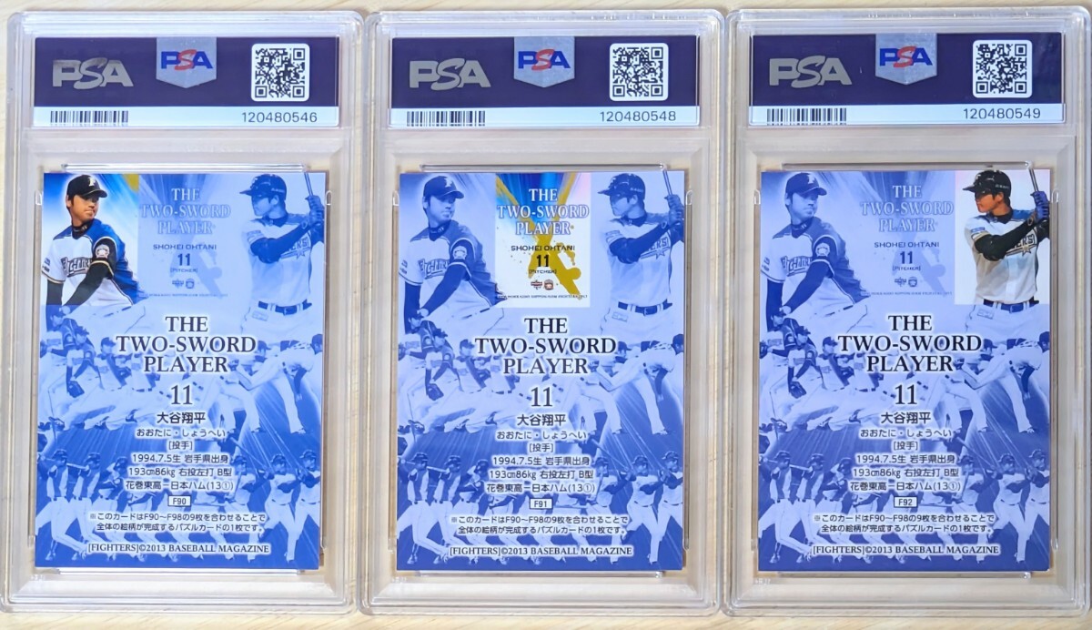 本品は、大谷翔平選手が日ハム時代のルーキパズルカードの上段二刀流部分のPSA鑑定品(PSA9)3枚です。