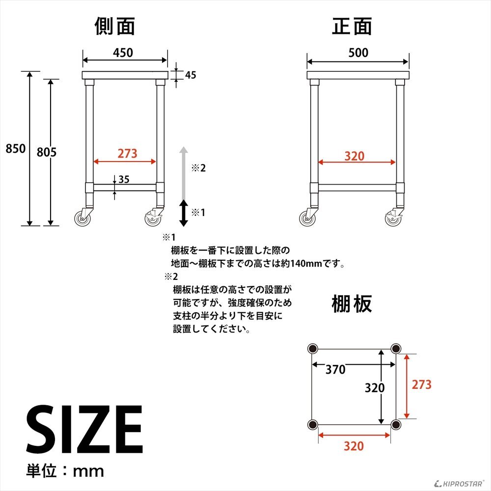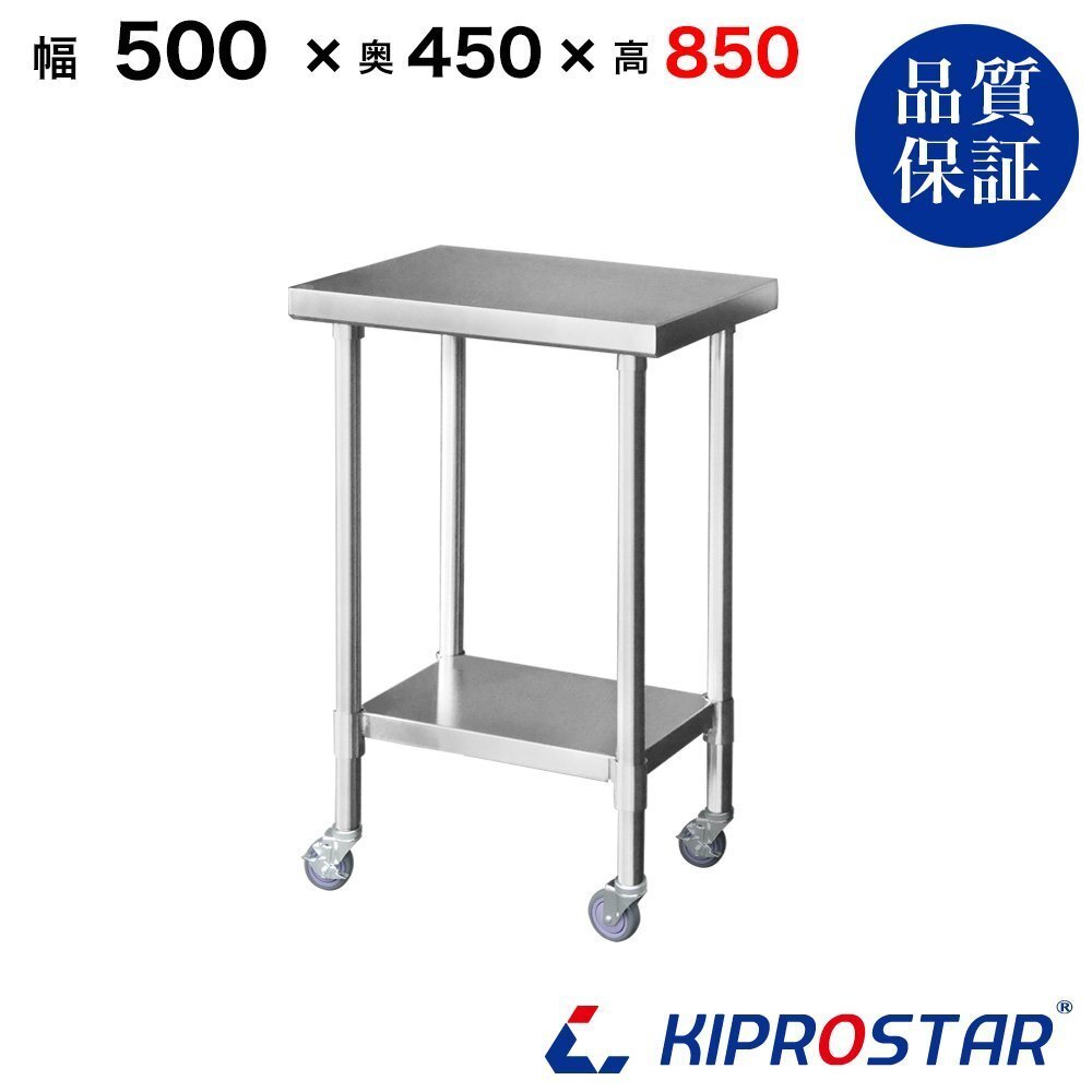 即納 業務用ステンレス作業台 キャスター付き 調理台 500×450×850 板厚1.2mmモデル |