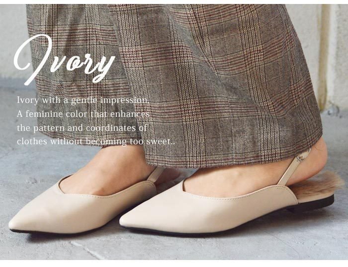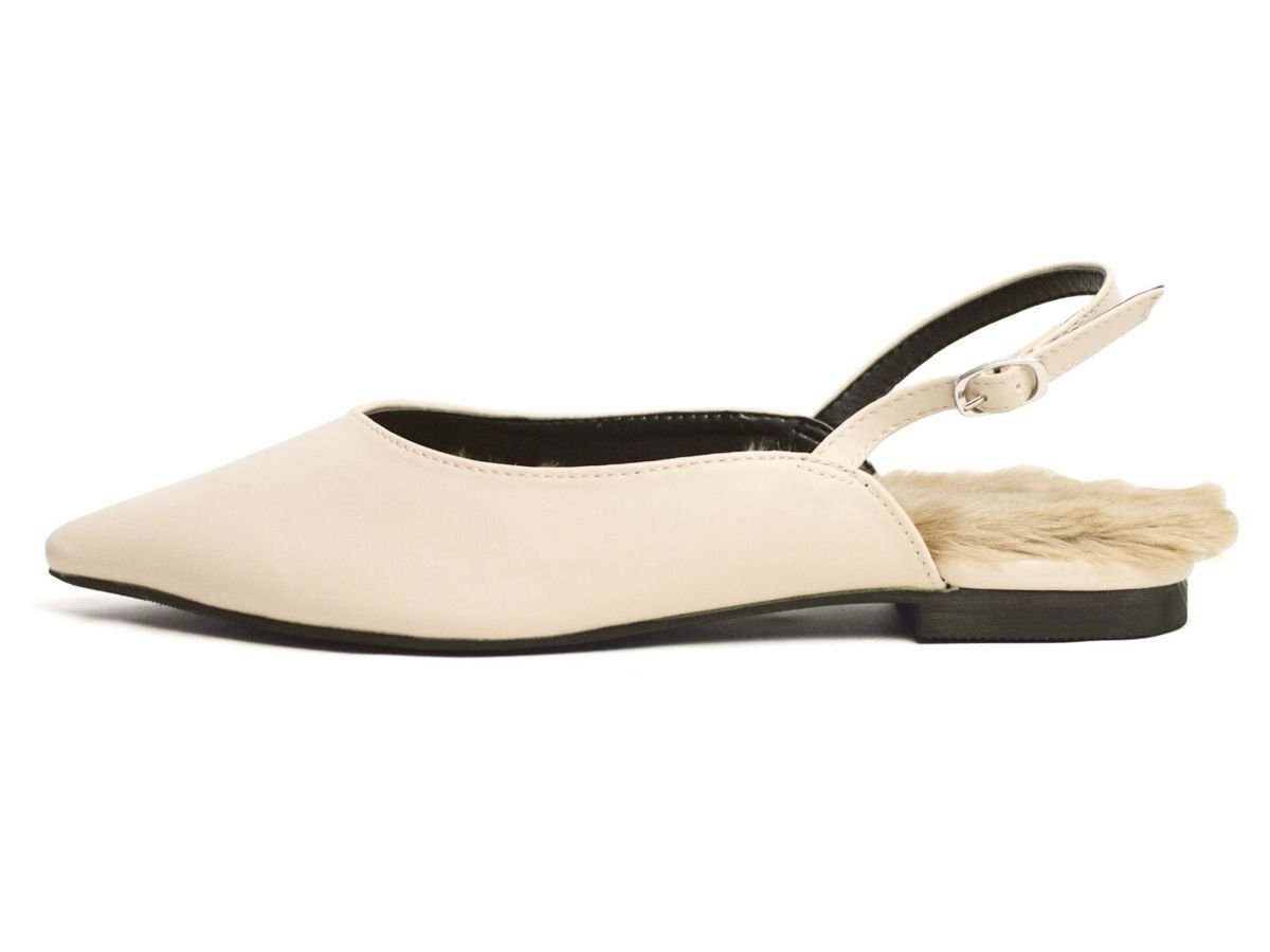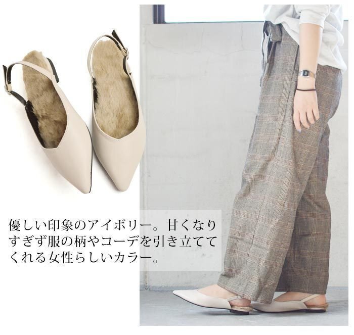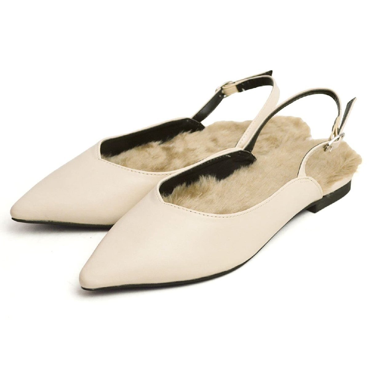レディース フラット パンプス ふわふわ ファー ストラップ付 ポインテッドトゥ サンダル ぺたんこ カジュアル 大人 靴 9380