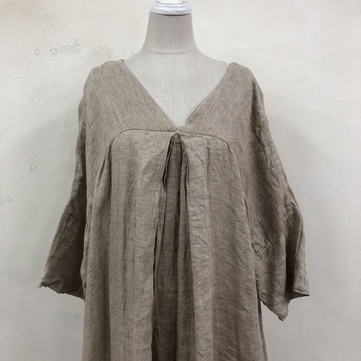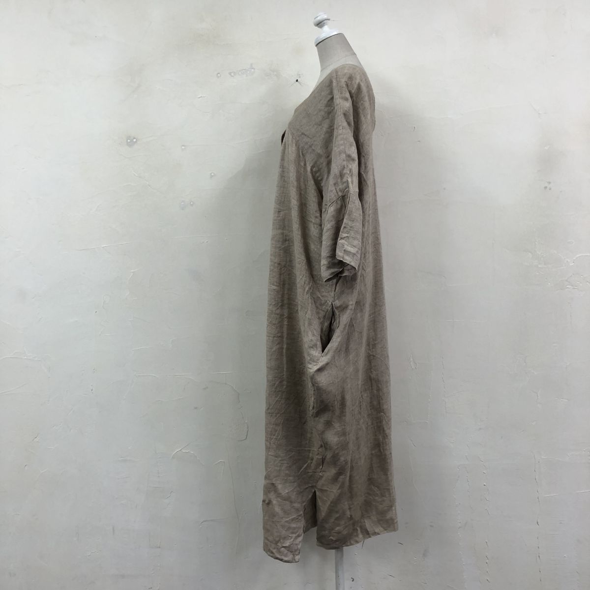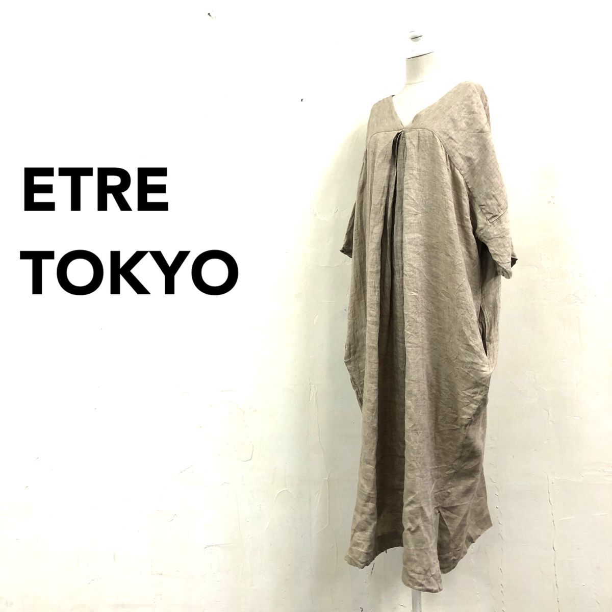 2K2813-G◆ ETRE TOKYO エトレトウキョウ 両Vネックリネンロングワンピース コクーン タック 半袖 ポケット ◆ sizeF ベージュ 麻