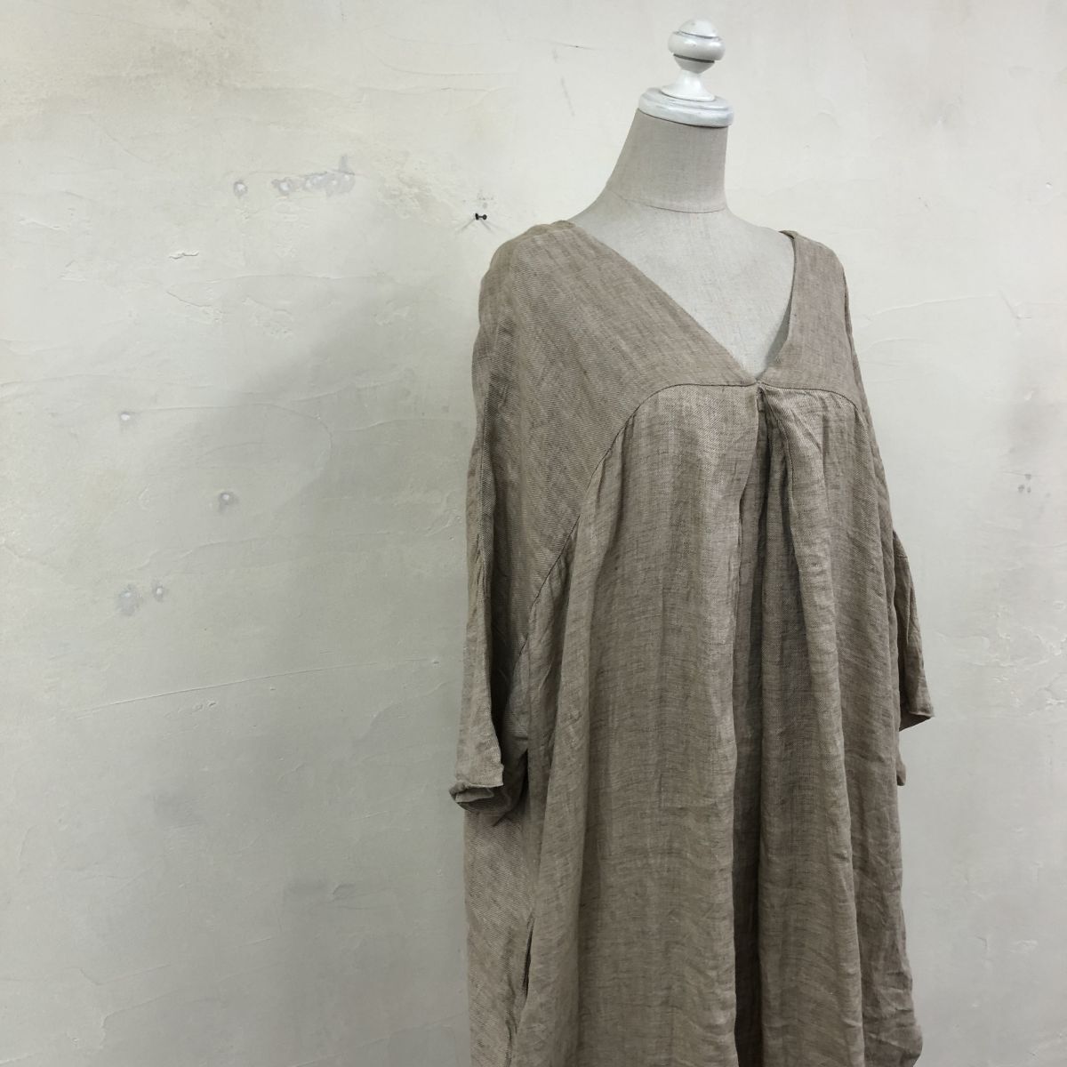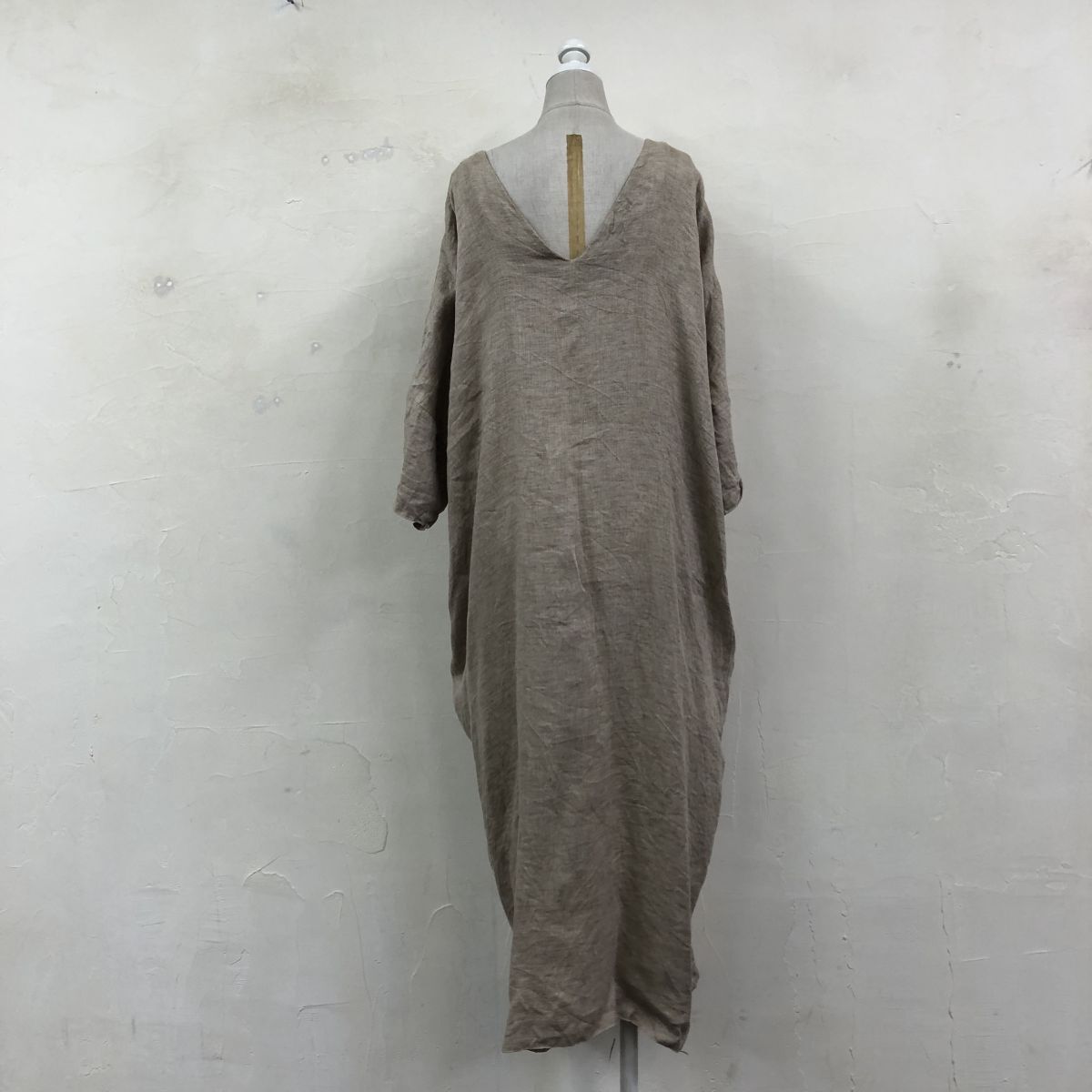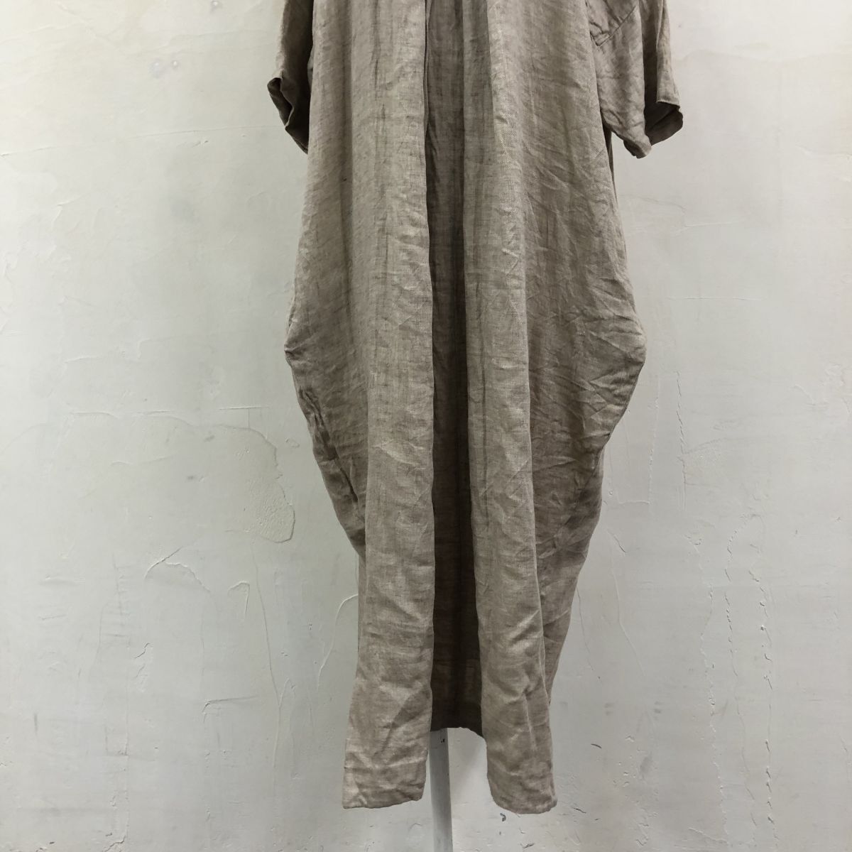2K2813-G◆ ETRE TOKYO エトレトウキョウ 両Vネックリネンロングワンピース コクーン タック 半袖 ポケット ◆ sizeF ベージュ 麻