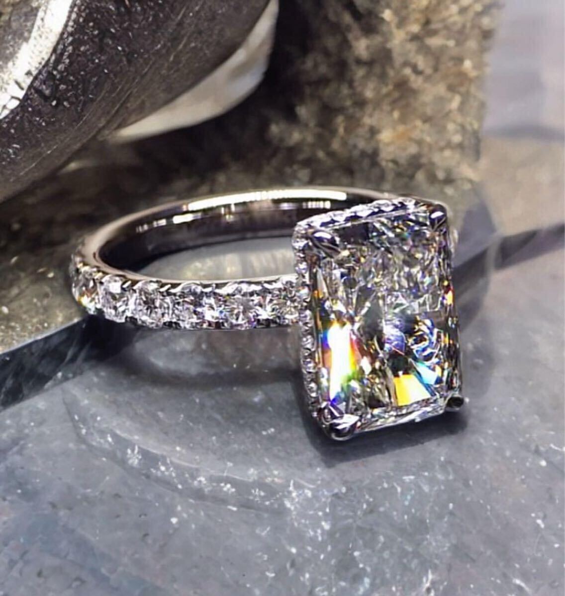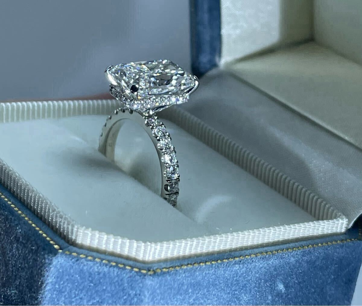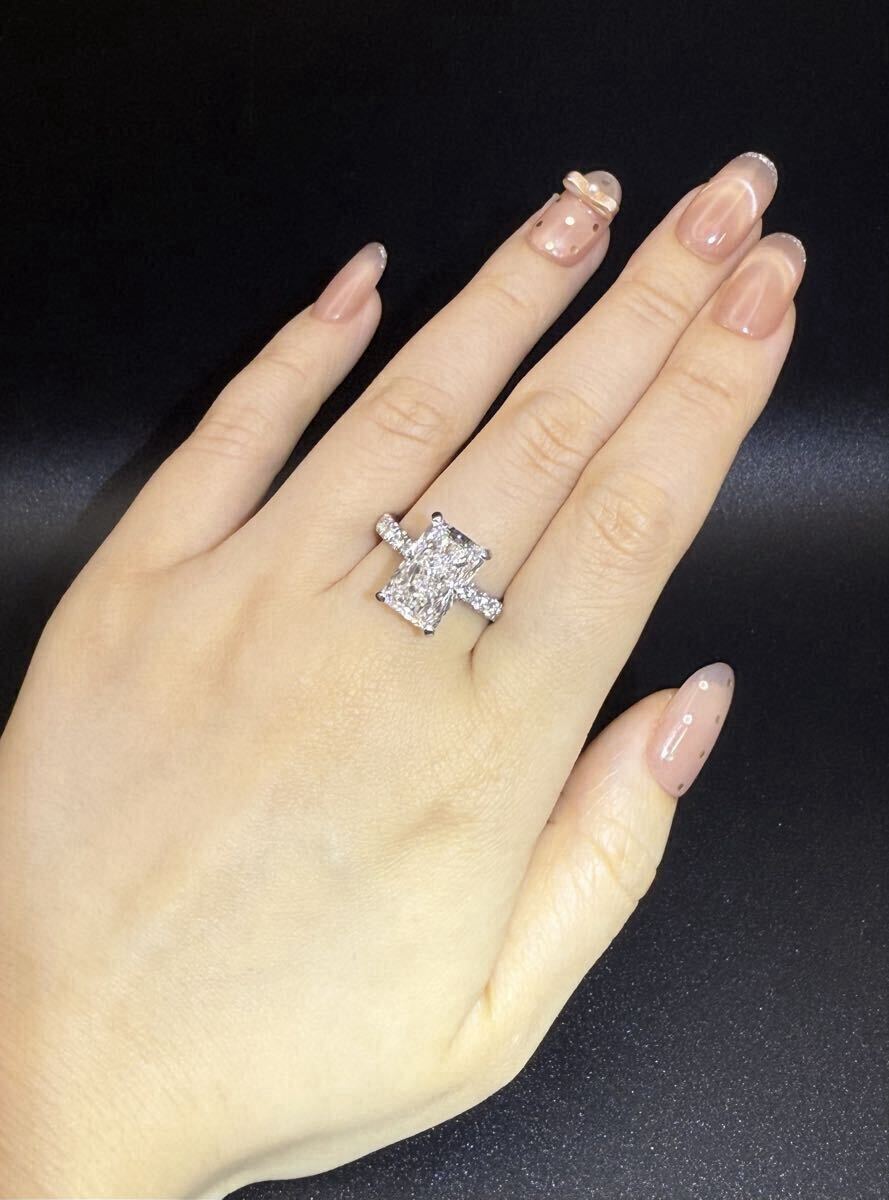 今回ご紹介するのは、5.01カラット・Eカラー・VS1というハイグレードのラボグロウンダイヤモンドを使用した、ラディアントカットのリングです。