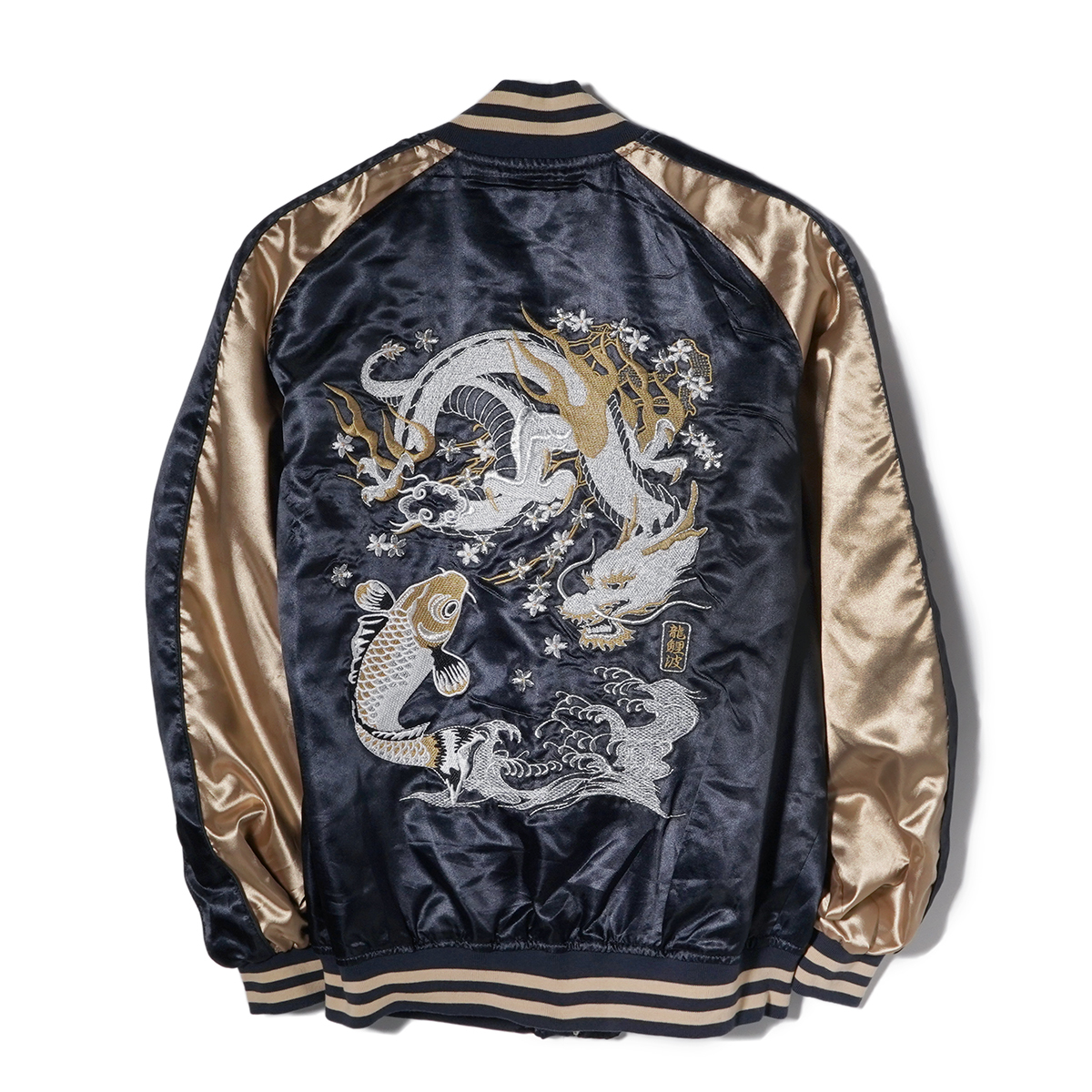 | さらりと羽織れるストリート定番スカジャン。 程よい厚さとサラッとした高級感のあるサテン生地、 フロントとバックに施された丁寧な刺繍使いがポイントで、アメカジでは定番のスカジャンを現代っぽくタイトなサイズ感に。 ボディはカラー配色切り替えで仕上げた大人っぽさのあるデザインなど凝ったディティール。 これからの時期に最適、ライトアウターとして活躍してくれる1着。 左胸内側裏ポケットあり、中綿ナシ。 【カラー◆Color】 龍鯉波 / NAVY 【サイズ◆Size】 XL(LL) 【寸法◆Size】 S size : 身幅51cm 肩幅(ラグランにより数値なし) 着丈59cm 裄丈80cm M size : 身幅53cm 肩幅(ラグランにより数値なし) 着丈61cm 裄丈82cm L size : 身幅55cm 肩幅(ラグランにより数値なし) 着丈63cm 裄丈84cm XL size : 身幅57cm 肩幅(ラグランにより数値なし) 着丈65cm 裄丈86cm 【素材◆Material】 ポリエステル 100% ※現物に近いカラーに撮影しておりますがモニターカラー設定、または印象によりカラー誤差があることをご理解よろしくお願い致します。 | ||
