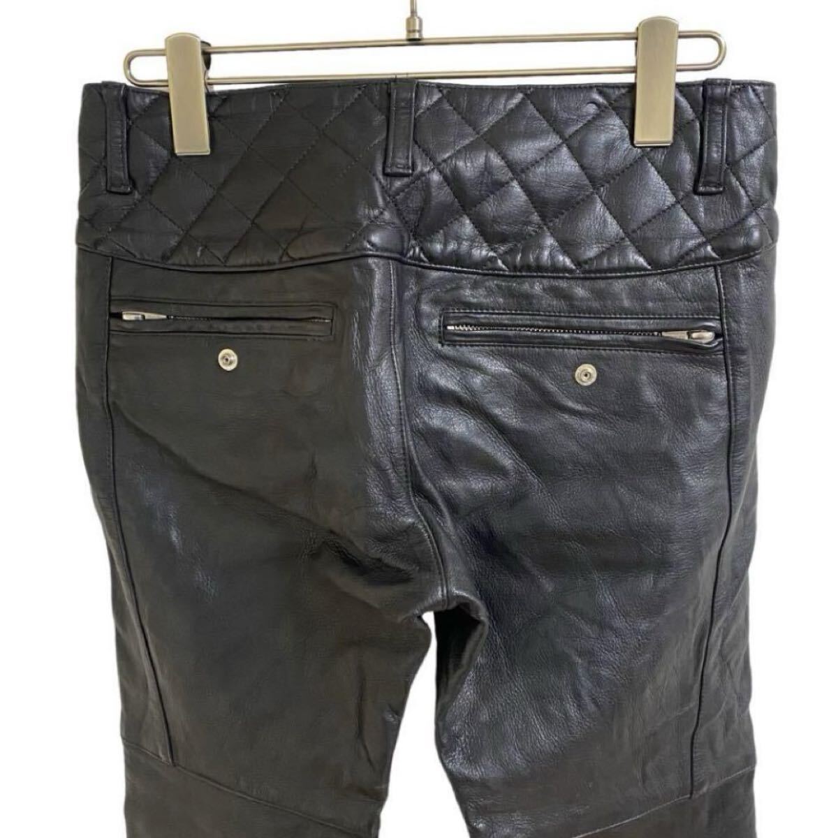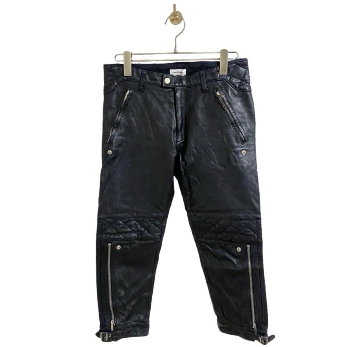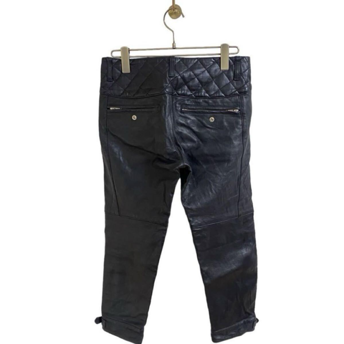 【アンダーカバー UNDERCOVERISM 2011AW MIRROR期 レザー バイカー パンツ キルティング ブラック 黒 メンズ2 カウハイド JUN TAKAHASHI】