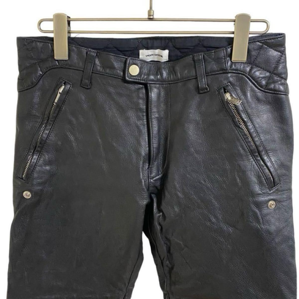 アンダーカバーの2011AWのレザーパンツです。キルティングやベルト素材やボタン使いなど、とても作り込まれたディテールです。ブラックの上質なカウハイドになります。大きな傷や汚れはありませんが、多少のスレや小傷、使用感はあるかと思います。