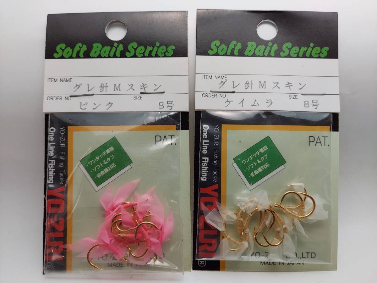 ヨーヅリ グレ針Mスキン 8号 ピンク・ケイムラ 2色セット(1袋10本入り、計20本)