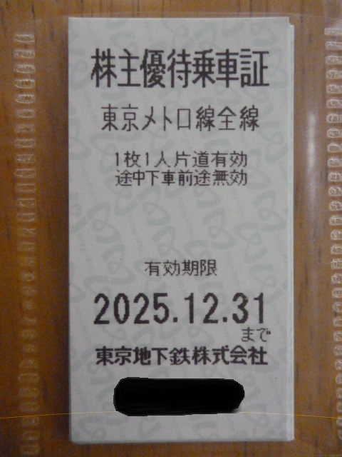 東京地下鉄株式会社 株主優待乗車証 東京メトロ線全線 9枚+その他無料券・クーポン券②