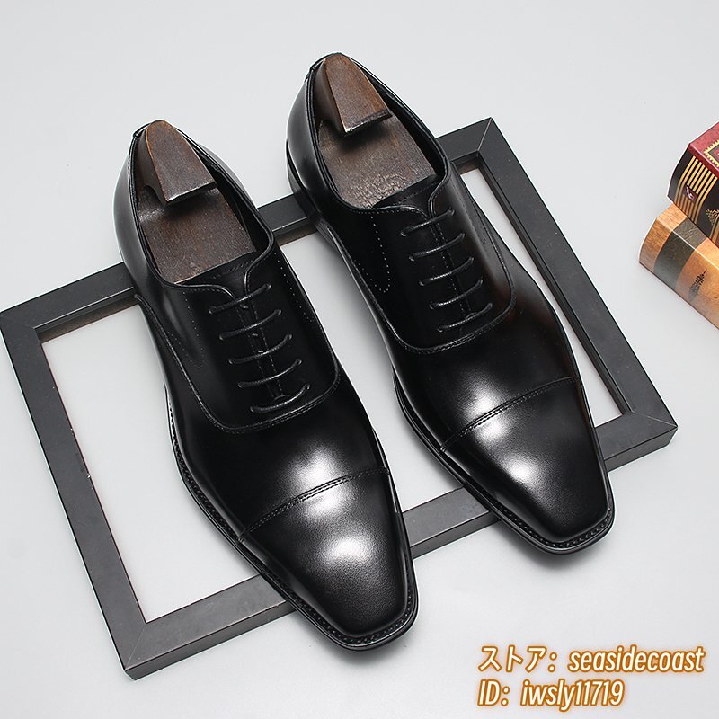 定価11万超★超希少 新品 ビジネスシューズ メンズ 本革 職人手塗仕上げ 上級牛革 レザーシューズ 紳士靴 フォーマル 革靴 ブラック 27.0cm