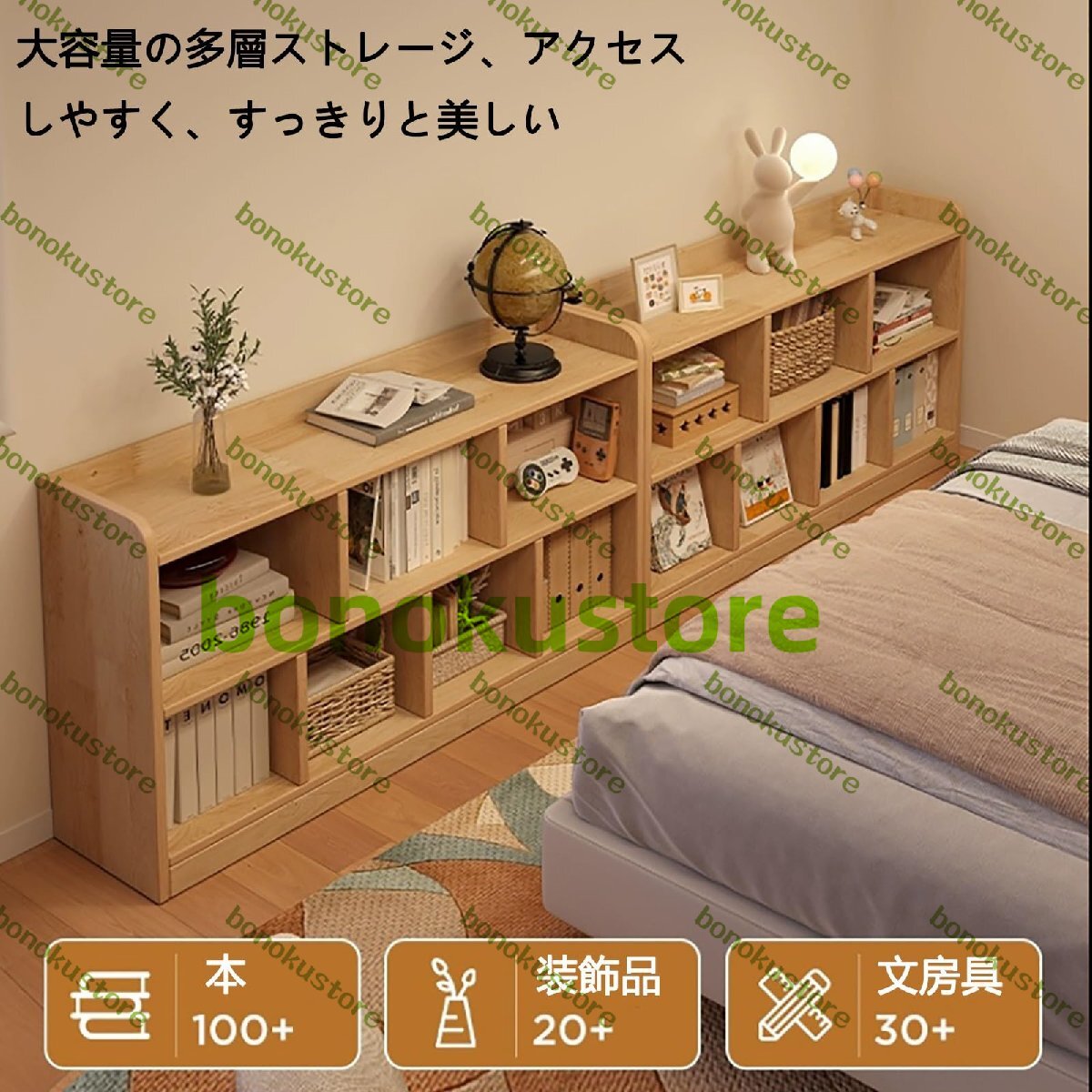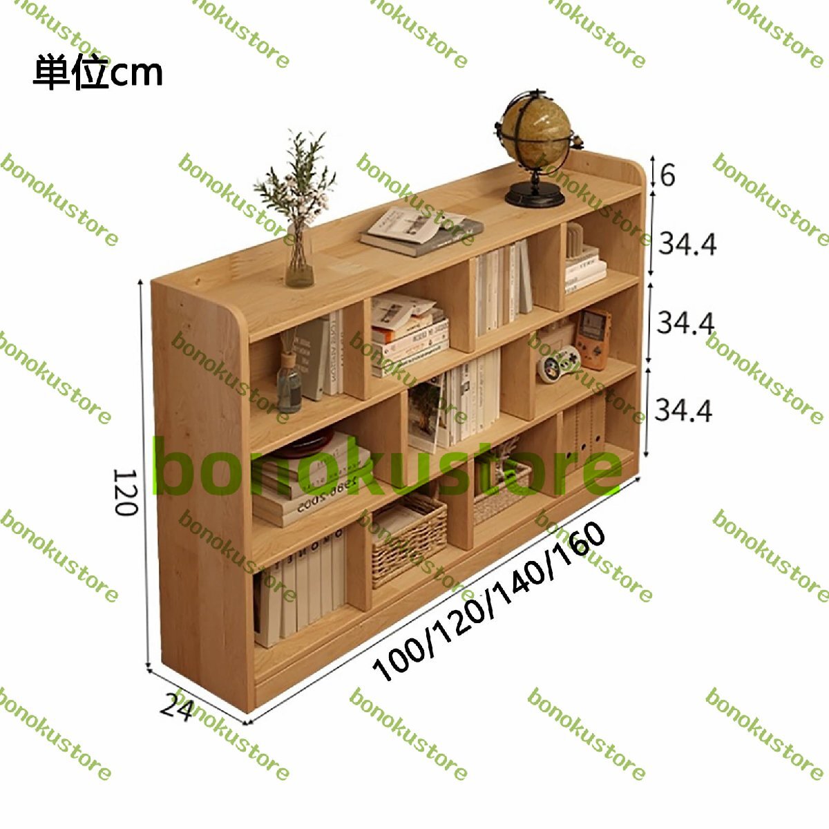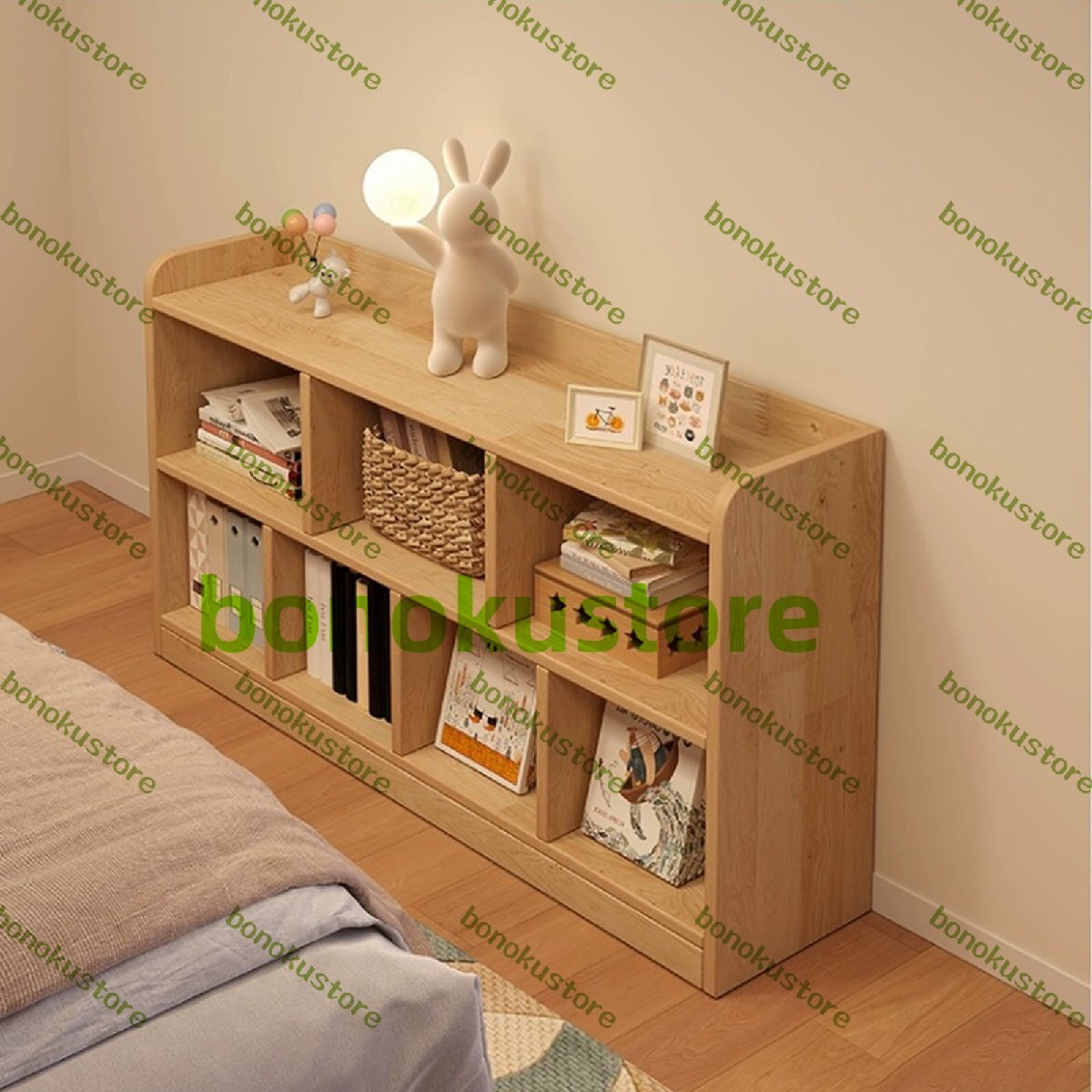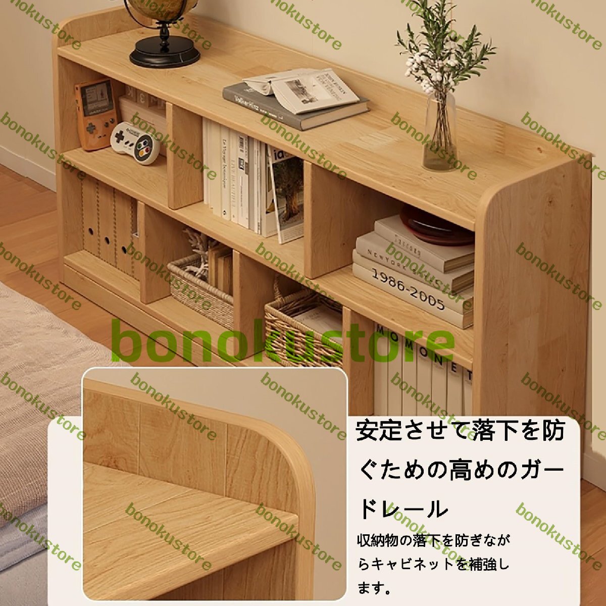 本棚 収納ラック 木製本棚 天然無垢材の高められたガードレールは安定しており、脱落を防ぎます カラーボックス コスメ収納 長さ100/120/140/160cm 絵本棚 無臭 多層収納 落下防止装置 丸い角 お手入れ簡単、組み立て簡単(120x24x80cm)