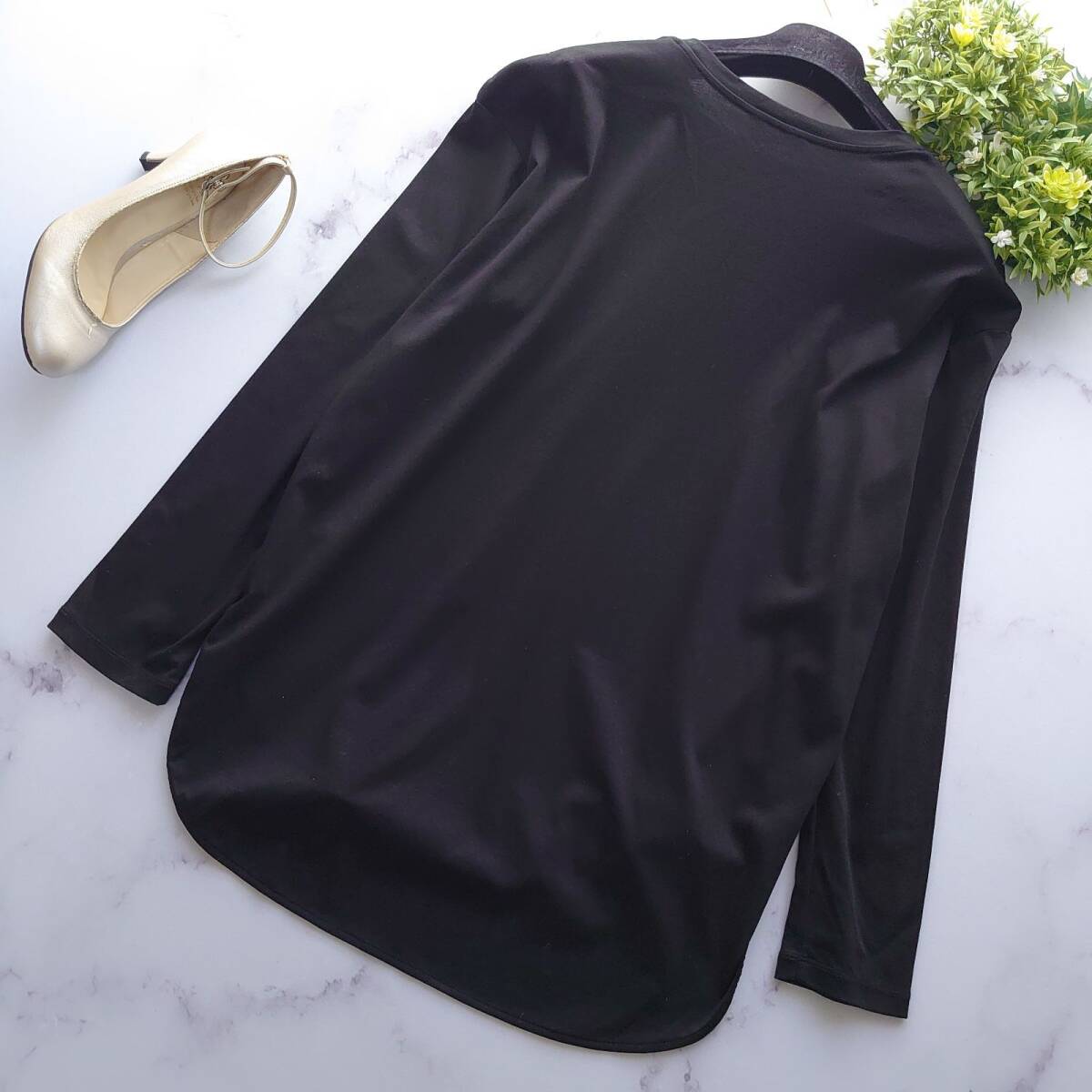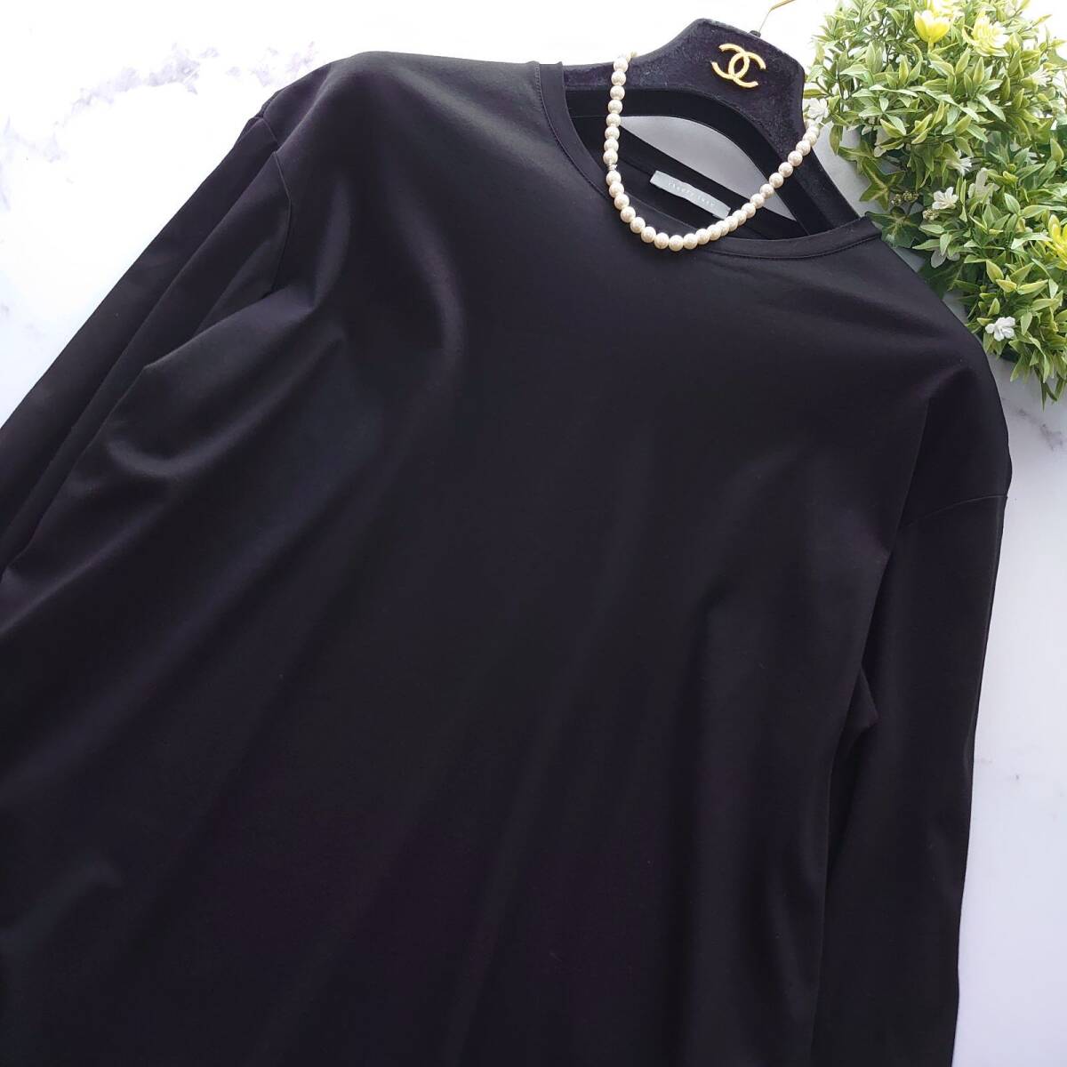 theory luxe セオリーリュクス シルク Sophia Jersey Jenel CRN 長袖 カットソー 黒 ブラック クルーネック L サイズ40 コットン トップス ブラウス レディース