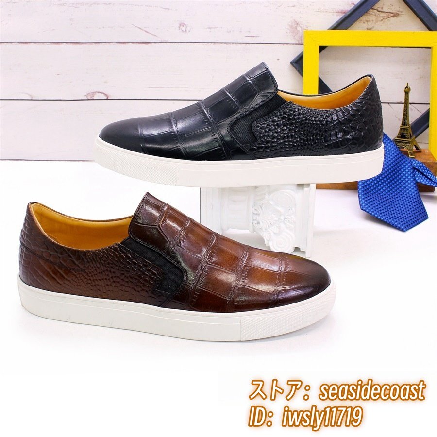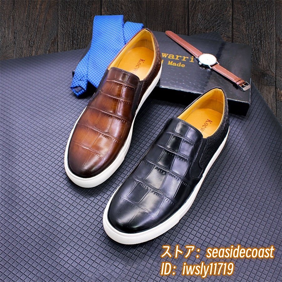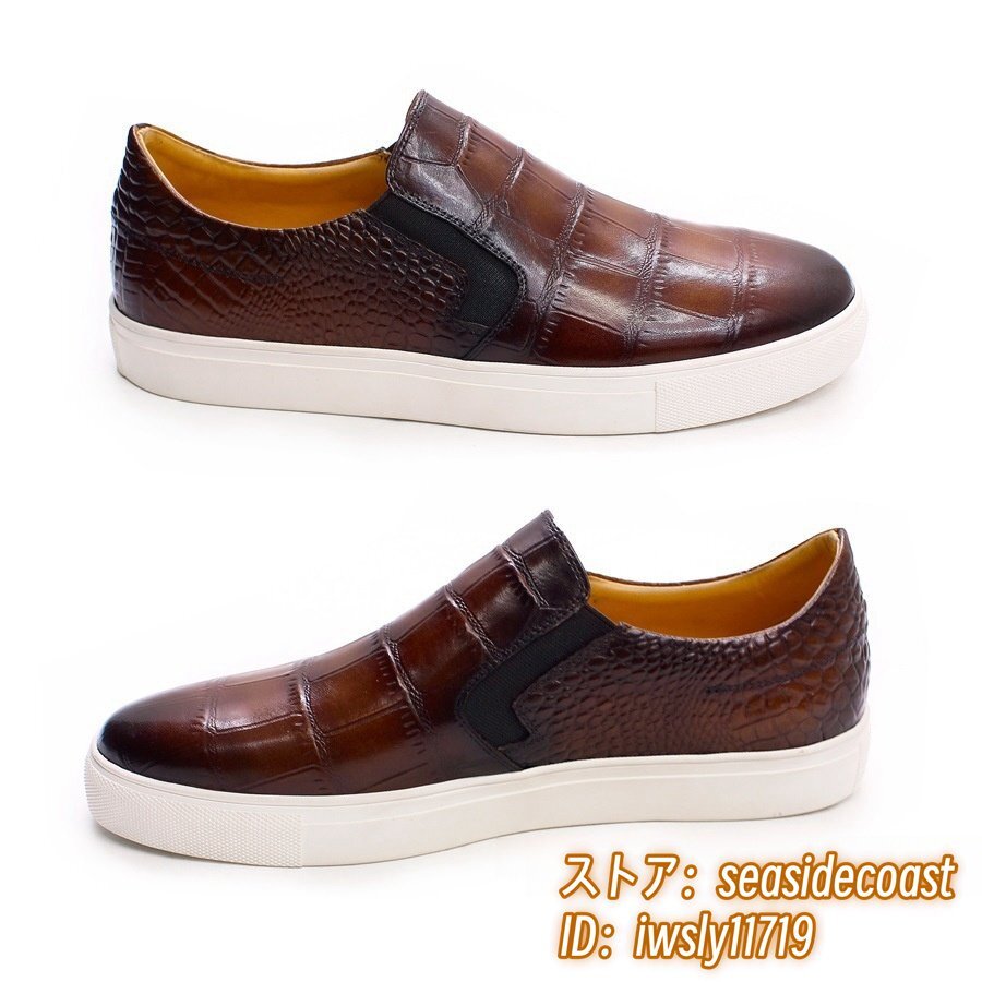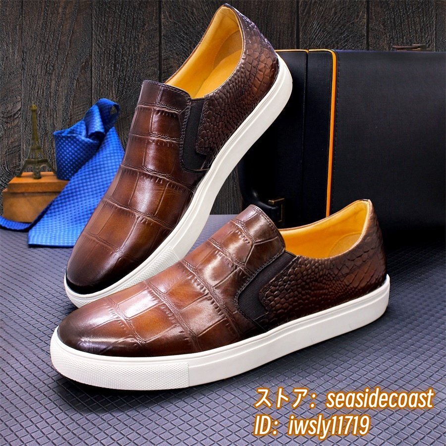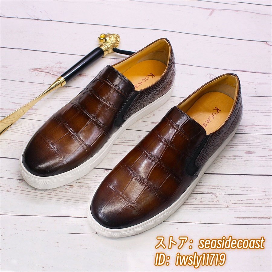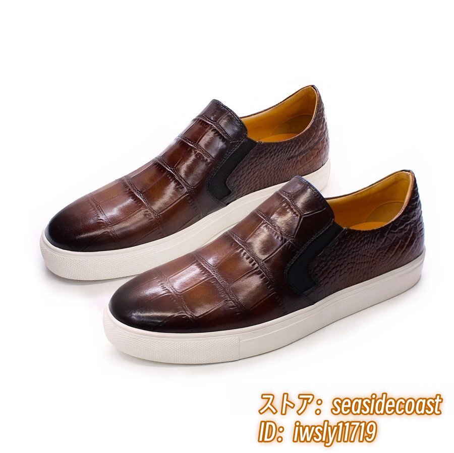 最高級*本革 レザーシューズ メンズシューズ 職人手作り 牛革 ローファースリッポン ドライビングシューズ宴会 フォーマル ブラウン 25.5cm