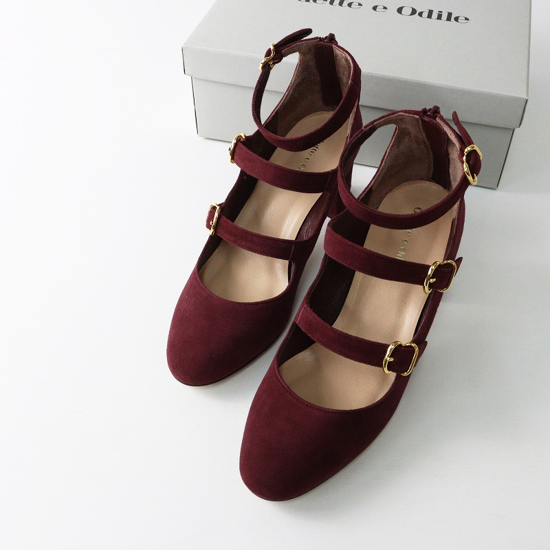 未使用 保管品 オデットエオディール Odette e Odile スウェードレザーベルトパンプス 24cm ボルドー┃【2400014620931】