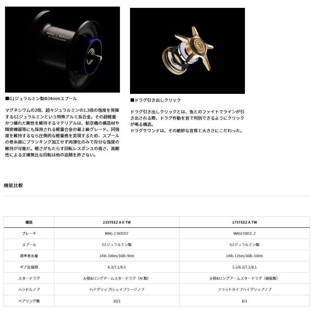 | 商品名 | 新品 ダイワ 23スティーズ AII TW 1000XHL 左ハンドル LEFT 釣り具 ベイトリール 23STEEZ A2 AⅡ | ||||