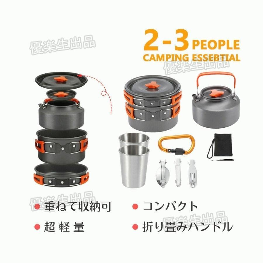 アウトドア 鍋 クッカーセット 調理器具 アルミニウム 軽量 鍋 ケトル キャンピング 10点セット 2~3人用 収納袋付き 調理器具セットです
