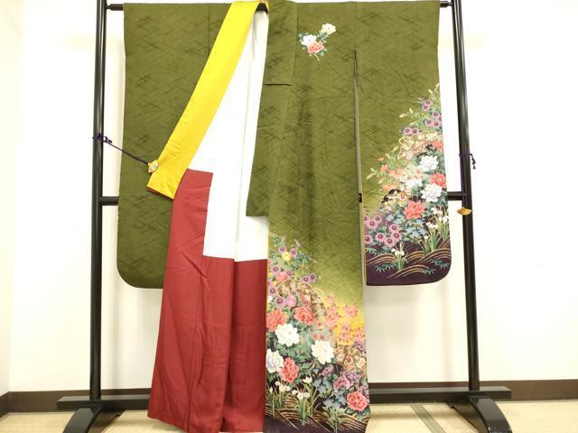 身丈 163cm(肩から) 裄丈 65.5cm 袖丈 111.5cm 縫込み 2cm 袖幅 33cm 前幅 24.5cm 後幅 30cm 着物縫いこみ 内揚げ 6cm 裄 お袖側 約4cm 身頃側 約3.5cm 《 サイズについてはこちら 》 |