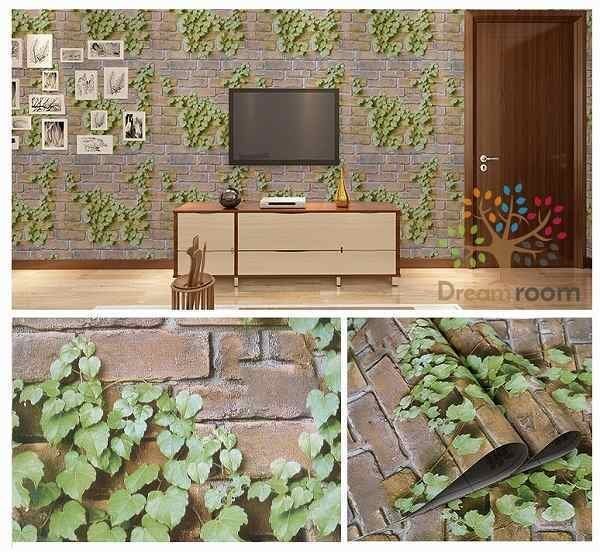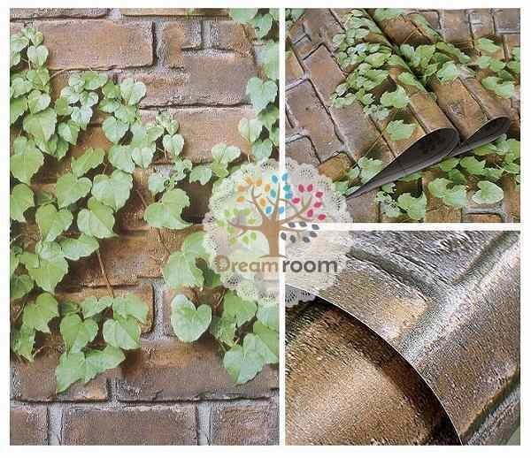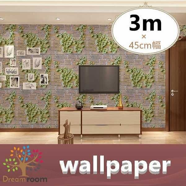 【 3m 】 3D レンガ×葉っぱ リーフ ウォールペーパー ビンテージ 石垣 ストーン 壁紙 北欧風 インテリア はがせる シール DIY
