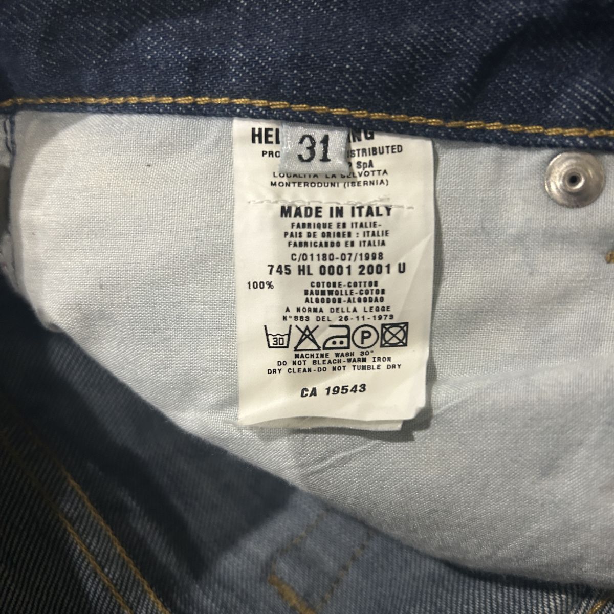 ◎美品!HELMUT LANG ヘルムートラング イタリア製 本人期 1998 デニムパンツ ボタンフライ ヴィンテージ メンズ 濃紺 W31サイズ◆PA4019