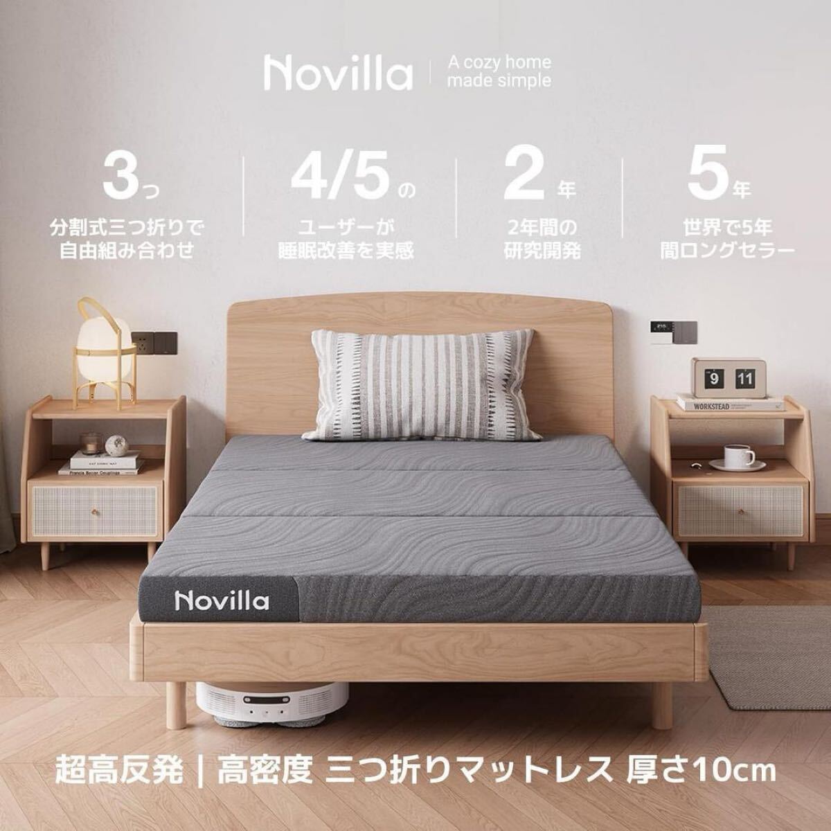 4cmの高反発ウレタンフォーム(140N)と6cmの高反発ウレタンフォーム(200N)を組み合わせた2層構造で、理想的な寝心地を提供します。クッション層:140N 高密度低反発ウェーブフォーム、ウェーブ状の構造で体圧を分散し、体の一部にかかる圧力をやわらげます。通気孔構造でムレにくく、長時間使用しても快適な寝心地を維持します。サポート層:200N 高密度高反発ウレタンフォーム、しっかりとした反発力で背骨を支え、「安定したサポート基準」を作り、自然な寝姿勢を守ります。硬さがしっかりしてへたりにくく、長期間でも安定したサポート力と耐久性を保ちます。三つ折り ベッドマット 低反発層の柔らかさと高反発層の硬さ、内部構造を裏返して使用することで、耐久性が最大6倍に延びます。お好みに合わせて硬さや寝心地を調整いただけます。頭部・腰部・脚部の3つのエリアは、層を入れ替えることで理想の寝心地にカスタマイズ可能です。季節や体調、寝姿勢に合わせて最適な硬さを選ぶことができ、疲れにくい快適な眠りを実現します。