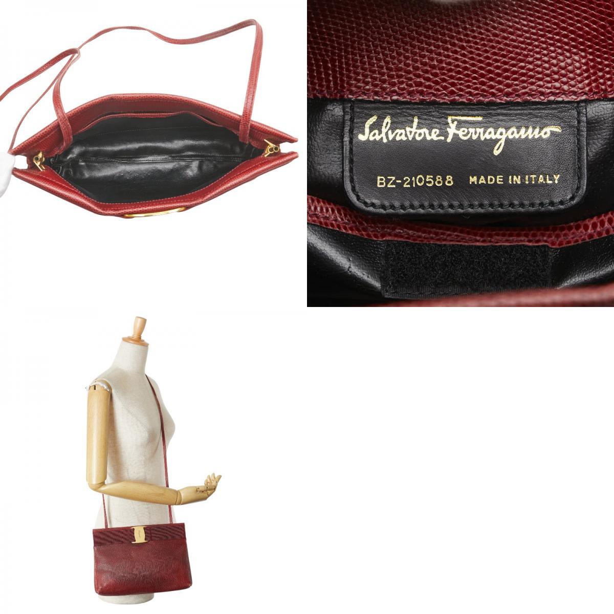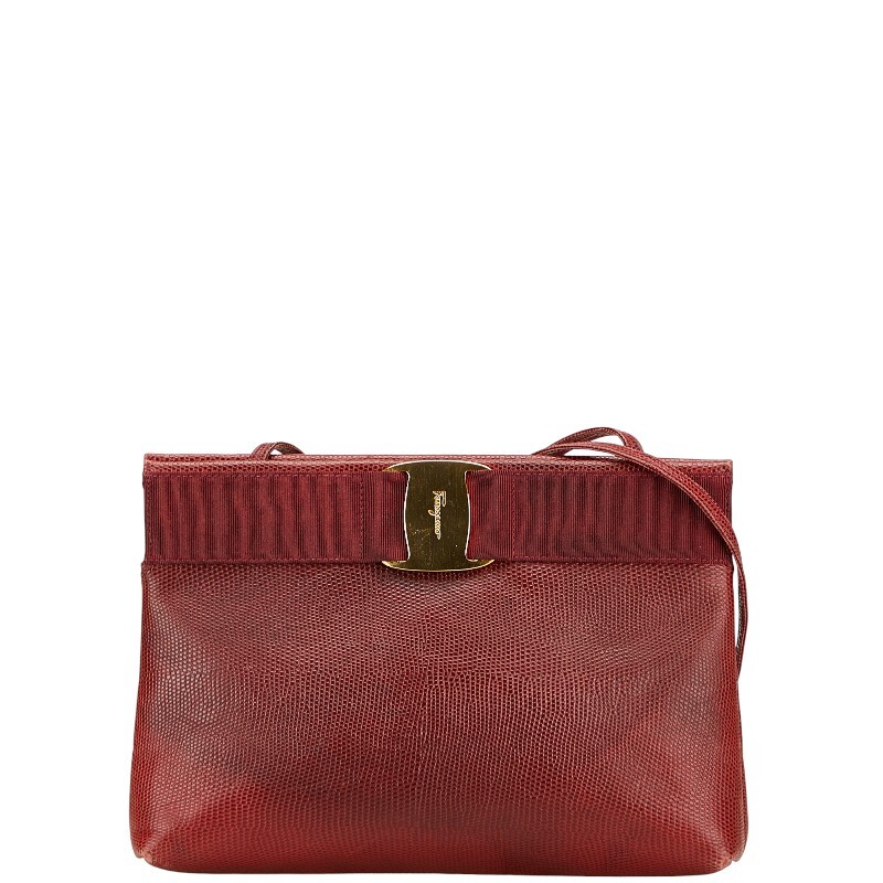 サルヴァトーレフェラガモ ヴァラ リザード型押し ショルダーバッグ ワインレッド レザー レディース Salvatore Ferragamo 【中古】