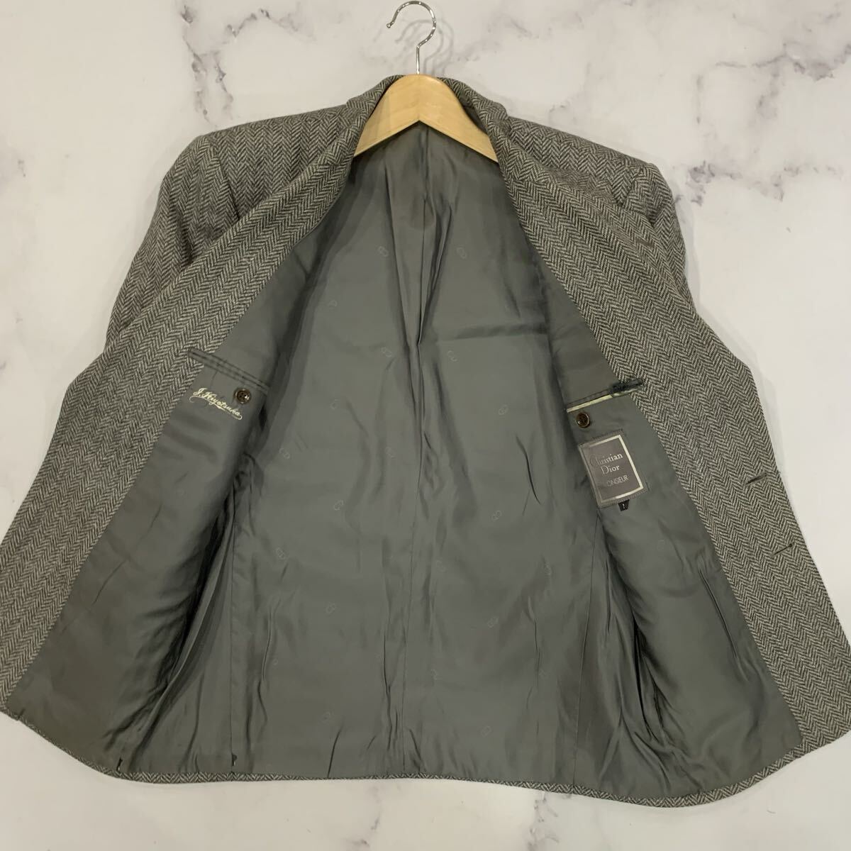 O ▼ 高級感の溢れる!! Christian Dior Monsieur クリスチャン ディオール ヘリンボーン テーラードジャケット 2ボタン M メンズ アウター