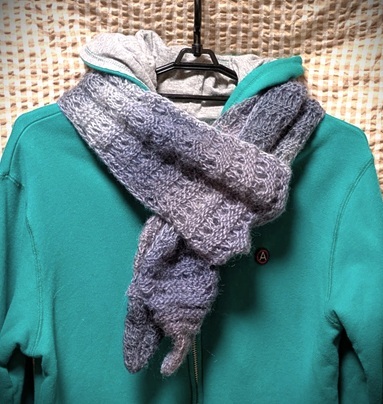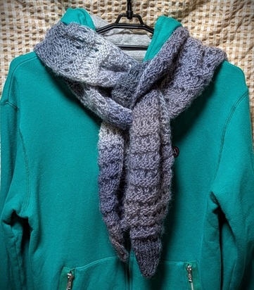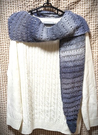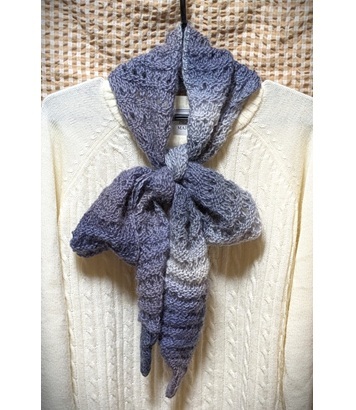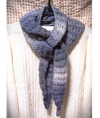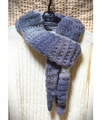 母手編み◆ウール100%◆薄・軽・細・長・とんがり*ユニセックス*マフラー◆濃淡グレー~薄紫系◆ハンドメイド◆送料込