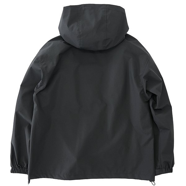 アウトドアアイテムに使用される表地と、中間層(フィルム)、そして裏地の3層を重ね、圧縮させた3レイヤー素材を使用したマウンテンパーカーです。 中間層のフィルムにより水を通しにくくさせ、透湿性を確保してムレにくく、防風機能も兼ね備えているので、体温調整の難しい季節の変わり目に最適です。 ジップを上げれば首元まで冷気から防いでくれるので、肌寒い時期はインナーにニットや厚手のトップスをレイヤードしても快適に着用できる機能性アウターに仕上がっています。 ややゆったりとしたシルエットが、トレンドのストリートコーデにもハマる汎用性のあるデザインで、シンプルなデザインとカラー展開で着用シーンを選びません。 家庭用洗濯機で洗えるためお手入れが簡単で、デイリー&ロングシーズンで活躍してくれるアイテムです。 【デザイン】 ・裏地なし ・フロントはダブルジップ×スナップボタン ・ノーベント ・袖先はベルクロベルト×ゴム入り ・裾にドローコード入り ・フードは取り外しできません |