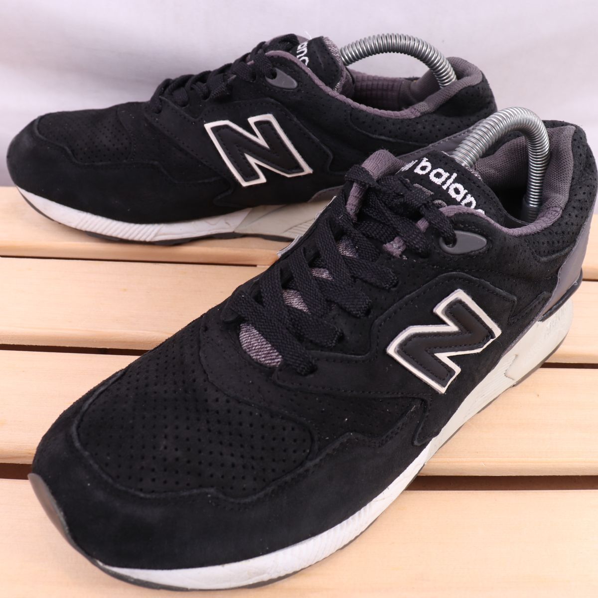 z2150【878】ニューバランス US8 26.0cm/黒 ブラック 白 グレー newbalance メンズ スニーカー 中古