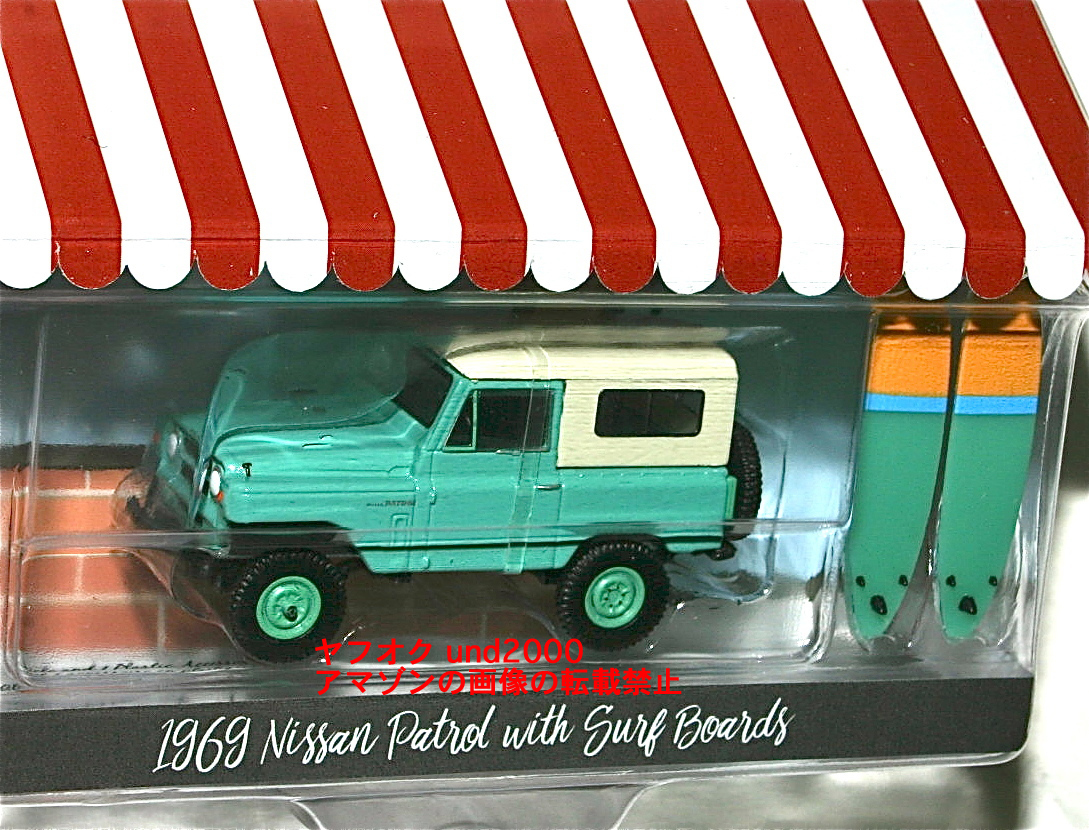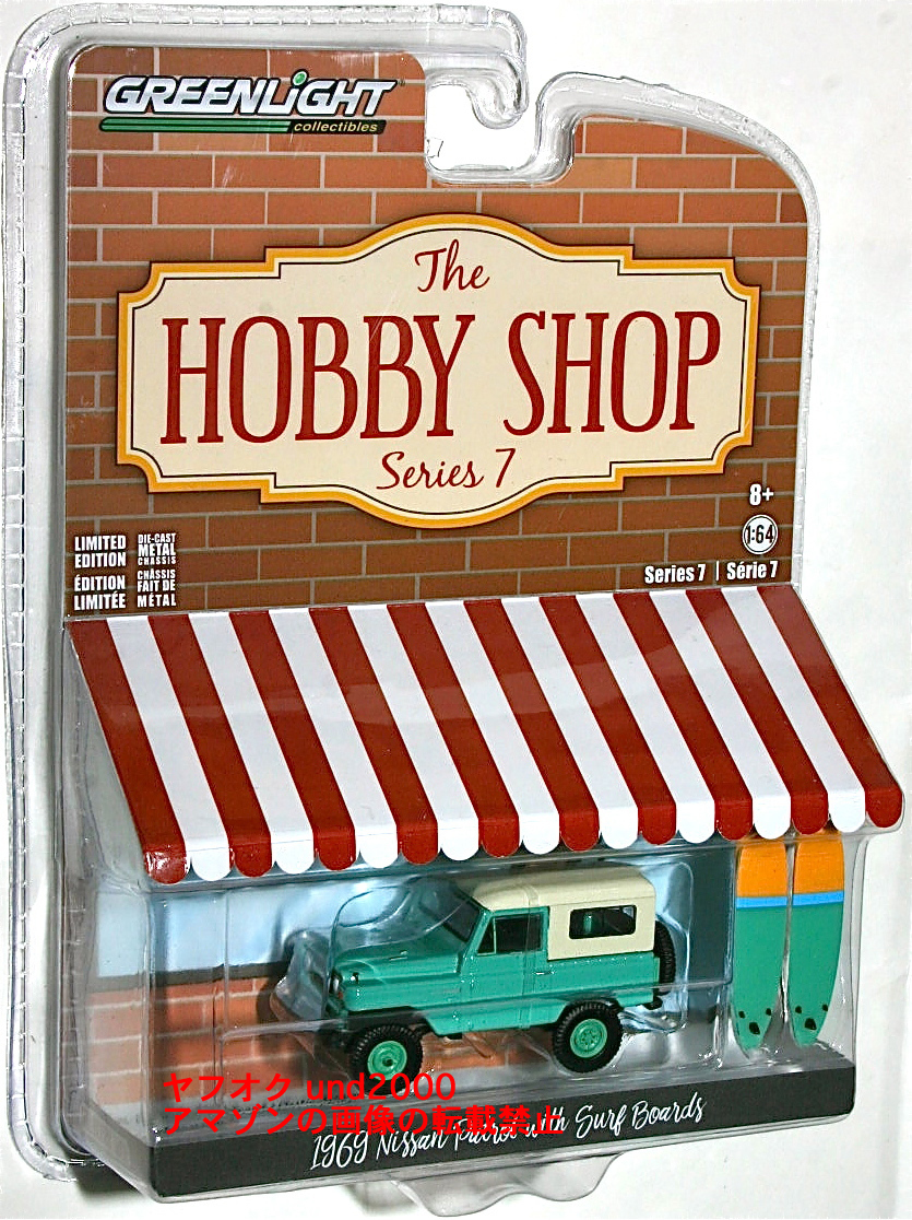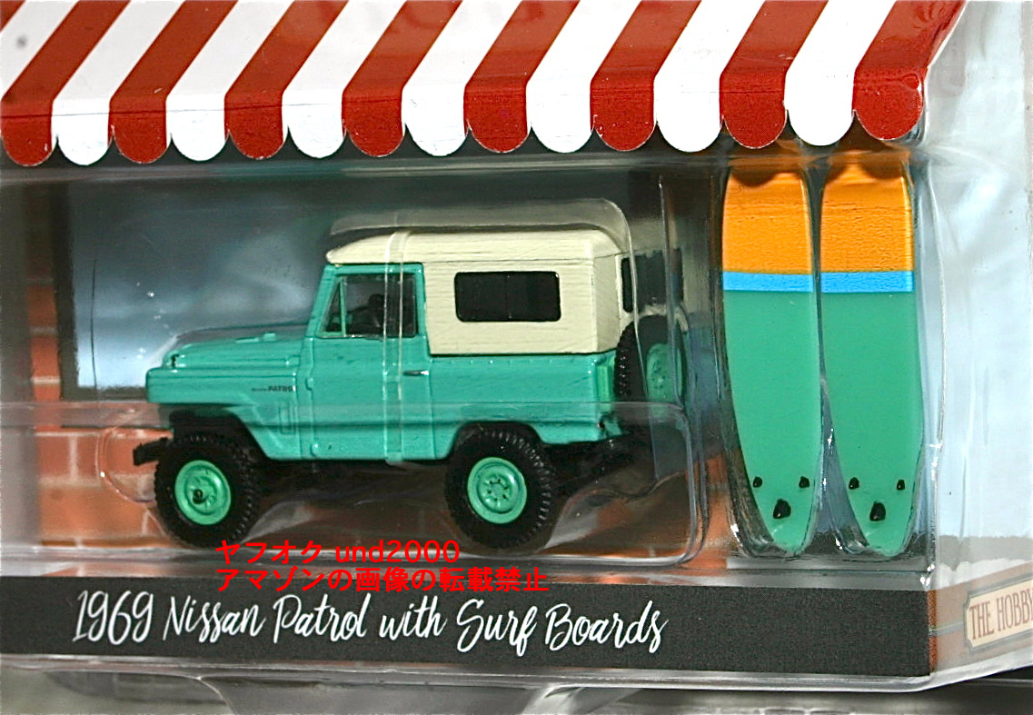 Green Light、Hobby Shop シリーズ 7、1969 Nissan Patrol with Surf Boards。サーフ・ボード付き。スケール1/64、トミカ・サイズ。並行輸入品。未開封新品。ブリスターに若干のスレがあります。量産品の製品のクオリティーについてはノークレームでお願いいたします。お支払いはヤフーかんたん決済のみ。東京発、ゆうパック持込60サイズ(東京700円 - 沖縄1330円)、レターパック600円、または定形外郵便(追跡番号、保険無し)450円の発送となります。(上記の送料はこの出品物のみの料金となります。複数落札、同梱包発送の場合、重さ、サイズが変わりますので送料が変わります。)3日以内のご連絡、かんたん決済の支払期限内(通常5日、支払方法により異なります)のお支払い厳守でお願いします。入札される前に「自己紹介」もあわせてお読みください。 検索用ワード グリーンライト