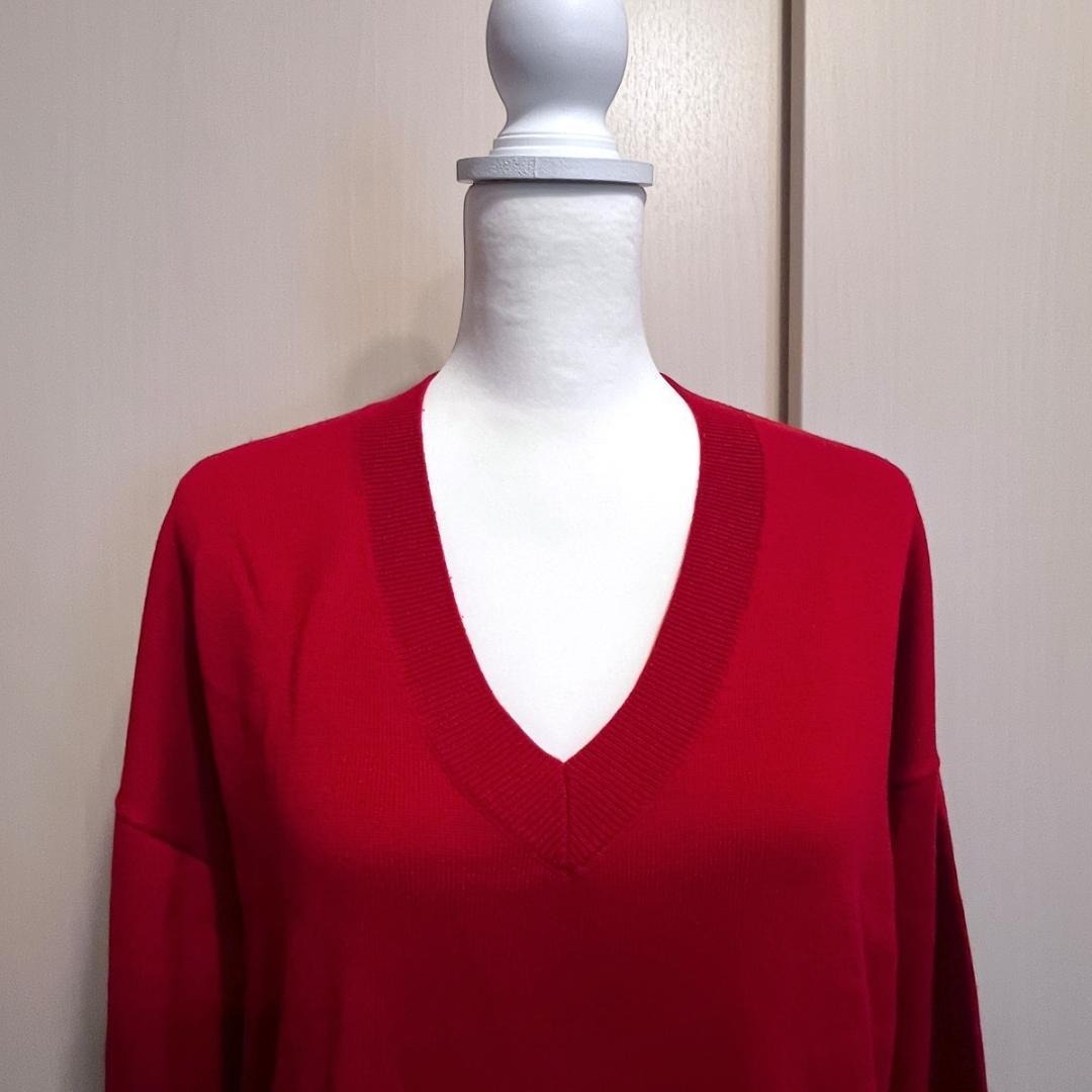 #KBF のレッドVネックオーバーサイズニット。鮮やかなレッドカラーが目を惹き、シンプルながら存在感のある1枚です。ゆったりとしたオーバーサイズシルエットで体型カバーもでき、リラックス感のある着心地。深めのVネックが女性らしさをプラスし、デニムやスカートと合わせてもバランス良く着こなせます。1枚で主役になる、冬の差し色ニットとしておすすめです。