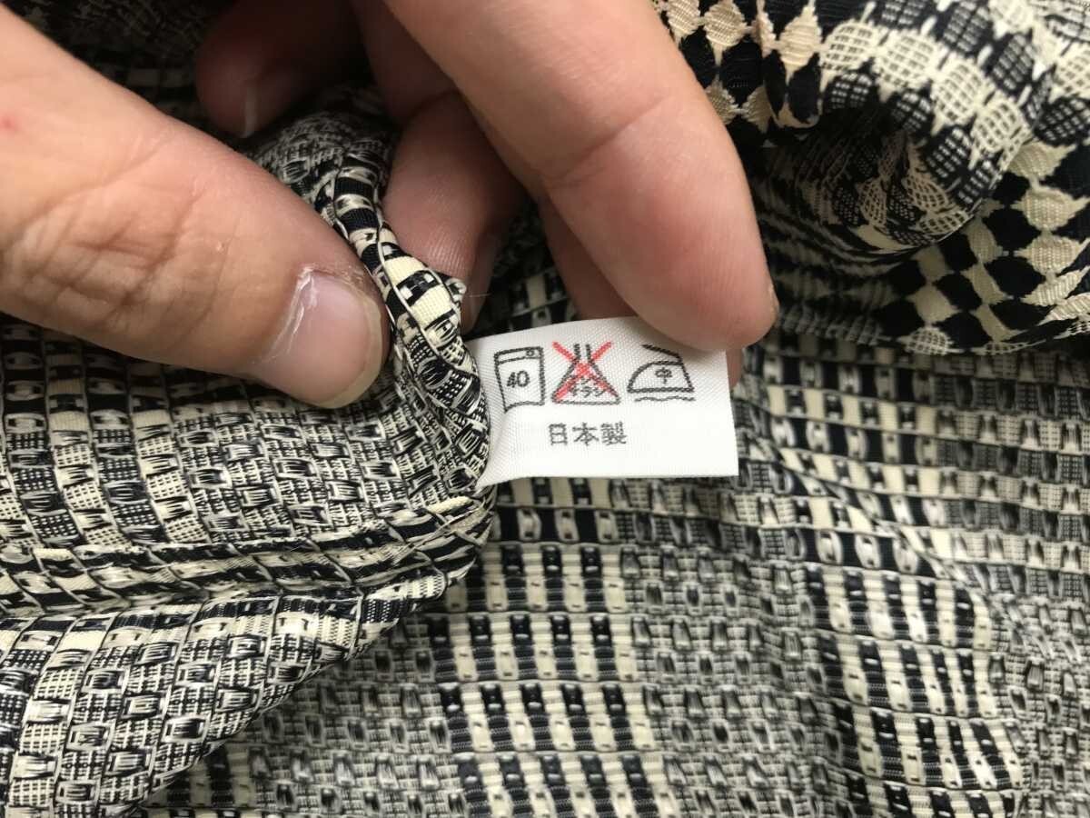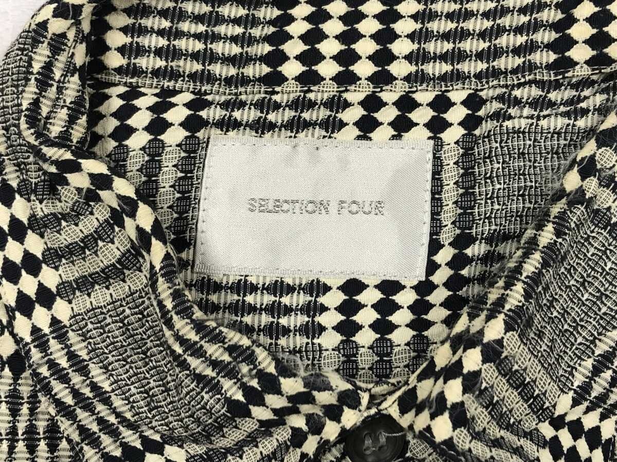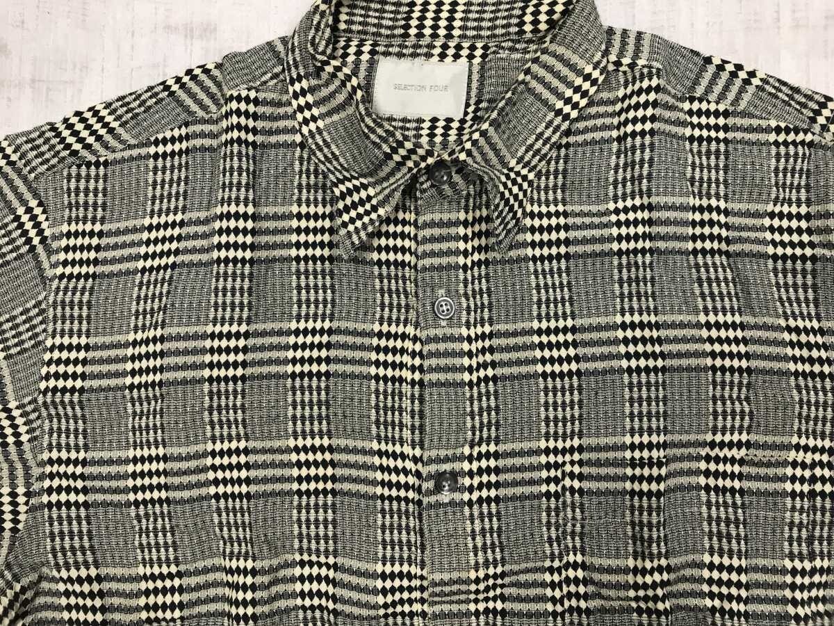 SELECTION FOUR レトロ オールド エスニック ストリート ダイヤモンドチェック 総柄 長袖シャツ メンズ レーヨン100% 日本製 白 黒です。