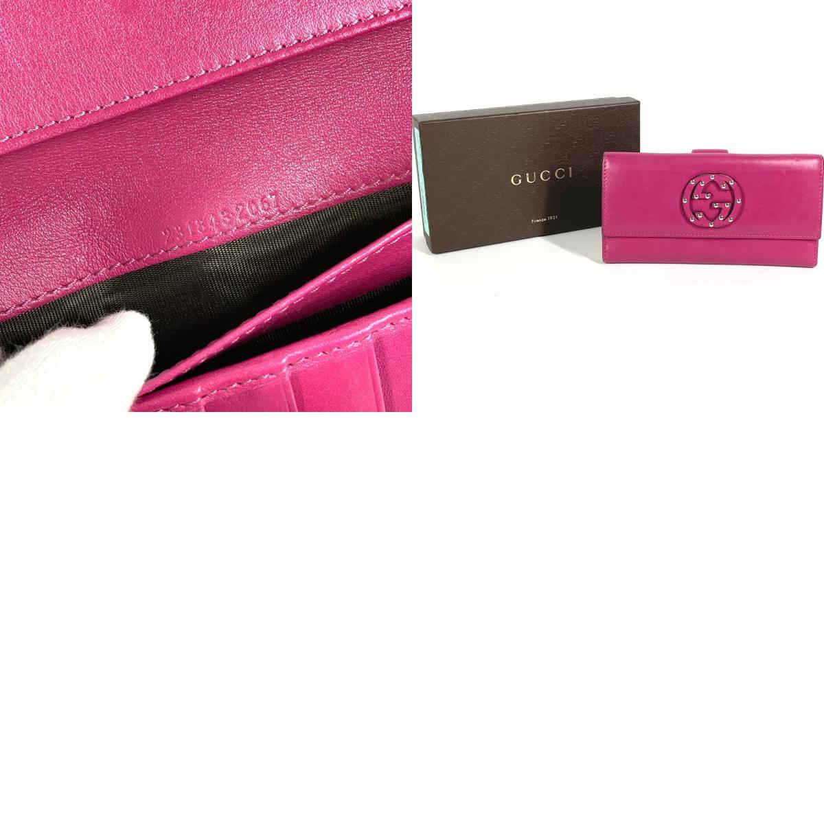 GUCCI グッチ 231843 インターロッキング G スタッズ 2つ折り フラップ ロングウォレット 長財布 パープルピンク系 ユニセックス【中古】