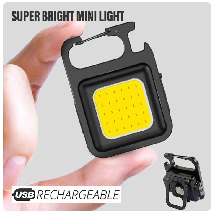 LED COB ライト ミニ投光器 4個 作業灯 小型 軽量 懐中電灯 ワークライト 照明 高輝度 マグネット USB充電ケーブル付 防水 キーホルダー カ