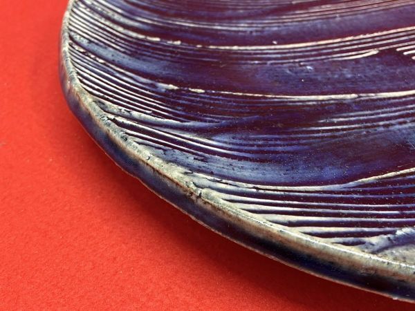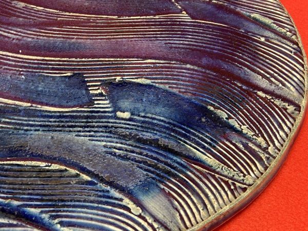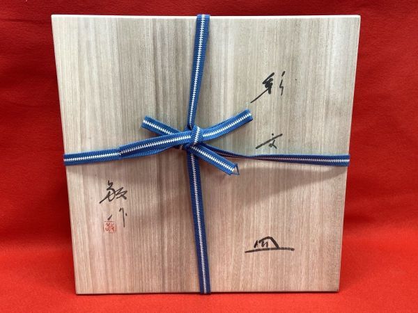 【M282】極美品 未使用 加藤敬也 瀬戸焼 お皿 直径約30cm 木箱付き 彩文 陶器 三つ足 高級和食器 b | ||