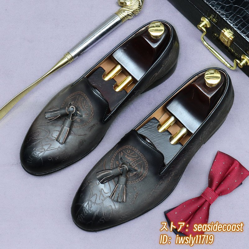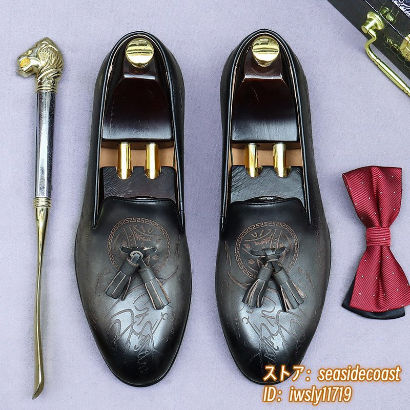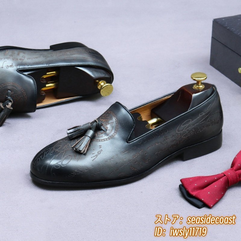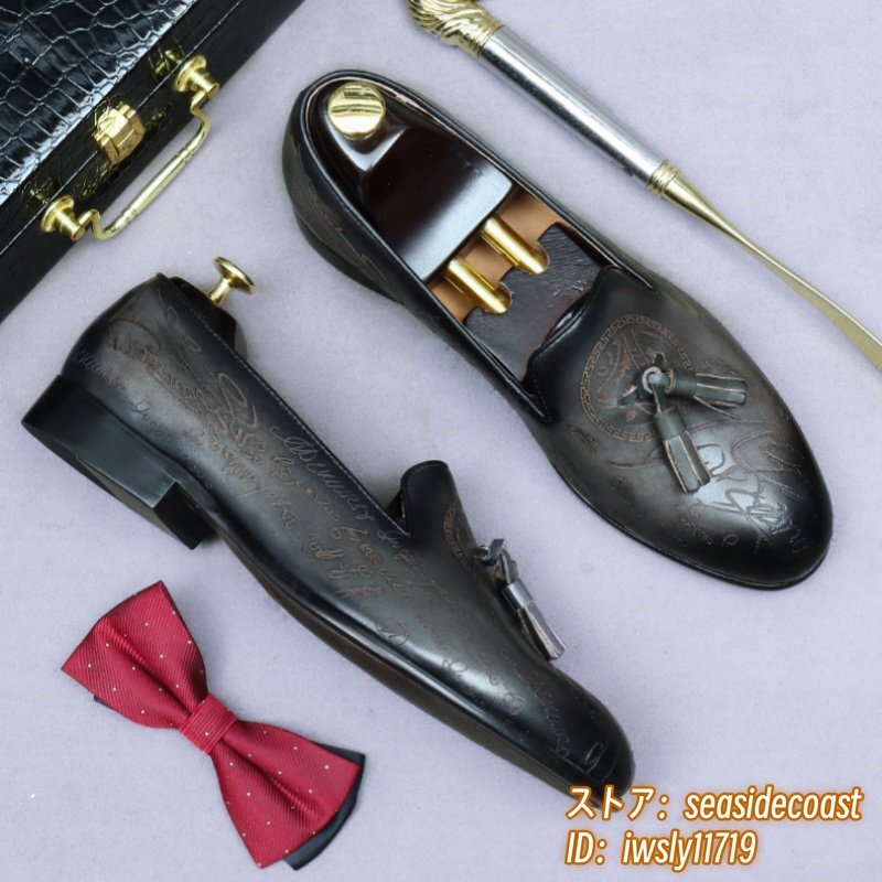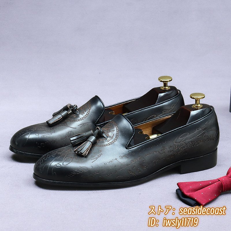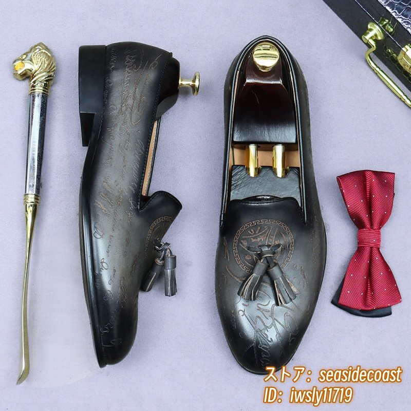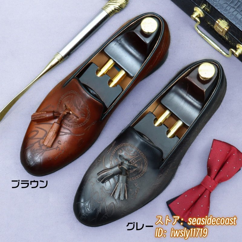 定価10万超★最高級 ビジネスシューズ メンズ 職人手作り 本革 レザーシューズ スリッポン ローファー 紳士靴 革靴 牛革 グレー 26.0cm