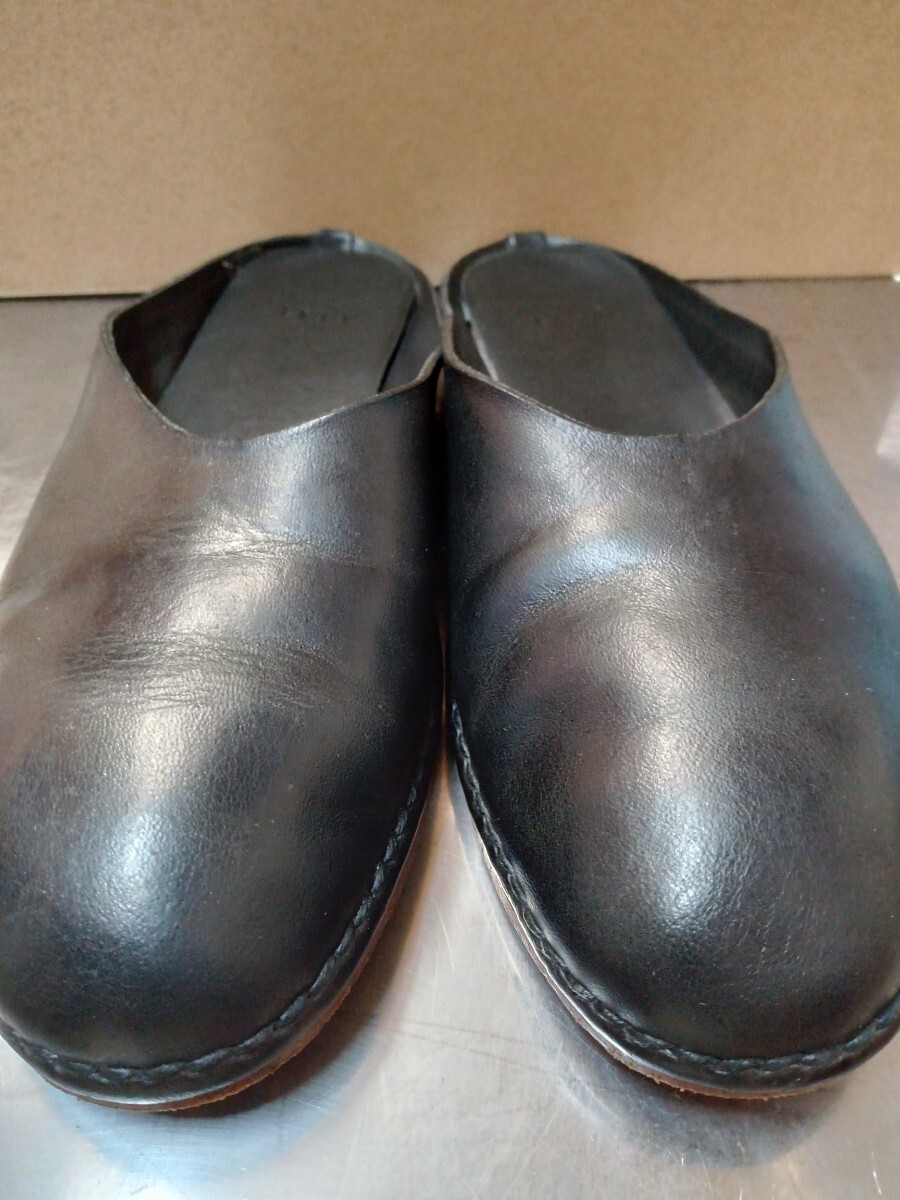 伝統的なバレエフラットのミュールサンダル。 アッパーは植物性タンニンで鞣したセミコードバンを使用。 一枚革ならではの履き心地は足馴染みが良く、素足で穿いても負担を感じさせません。 使い込むほどに風合いが増し、経年変化を楽しみながらご使用いただける一足です。全ての制作工程を1人の職人が担当するため45rpm,アーツアンドサイエンス等一部の限定店舗のみの取り扱いブランドです。