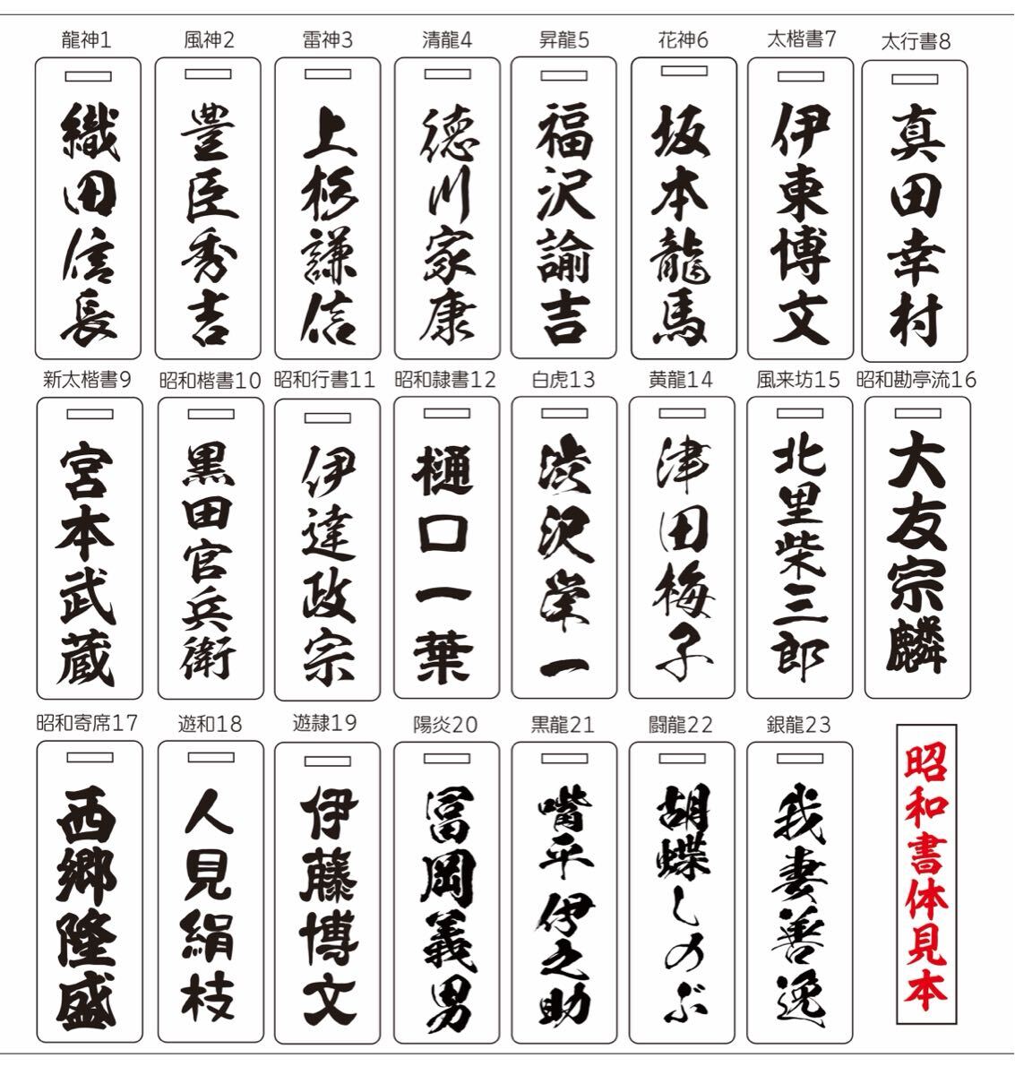 力強く 優しく 美しい 昭和書体を使用した こだわりのネームタグです