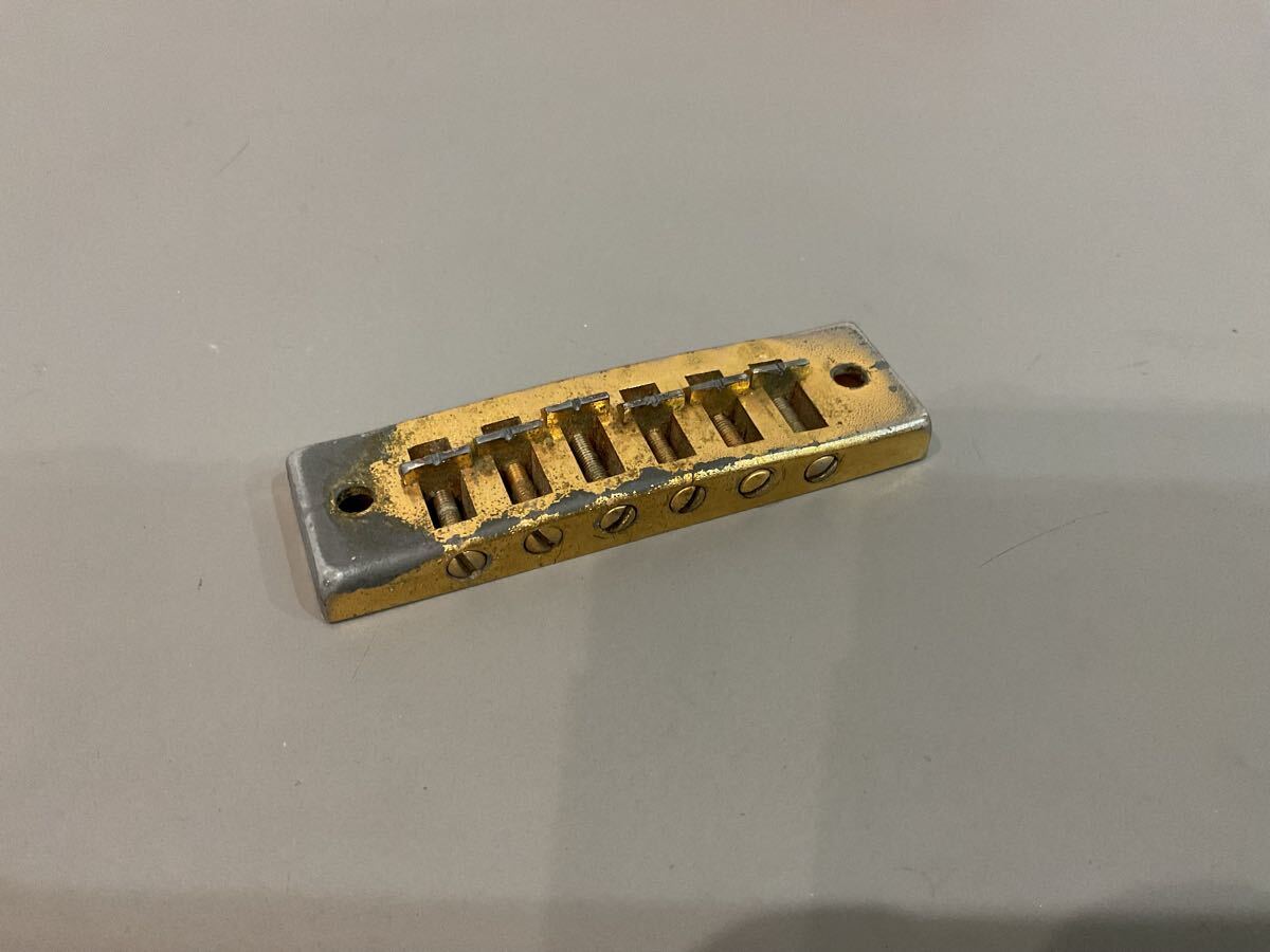 ギブソン 1970年代のL-5Sのブリッジです。ゴールドはついているモデルも少ないので珍しいです。本体のみ