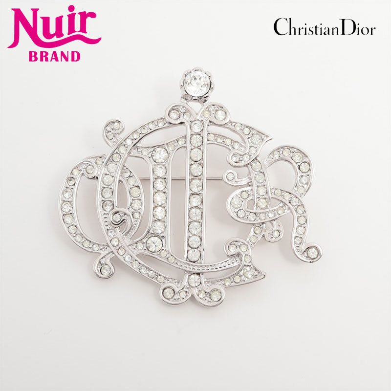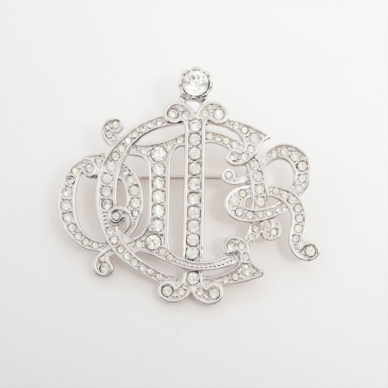 クリスチャンディオール Christian Dior ブローチ ロゴ ラインストーン シルバー