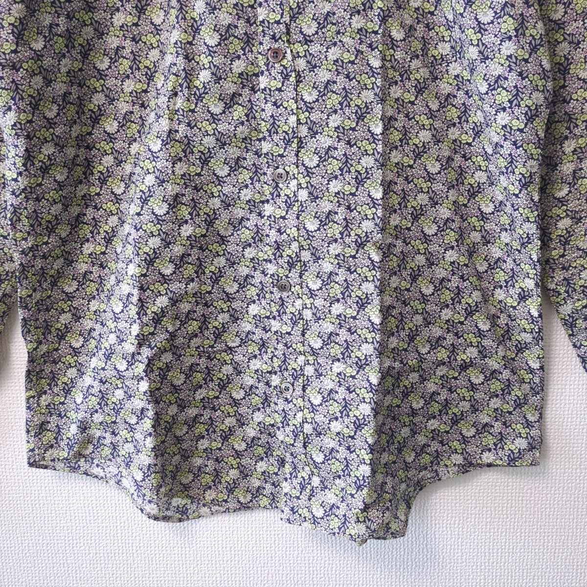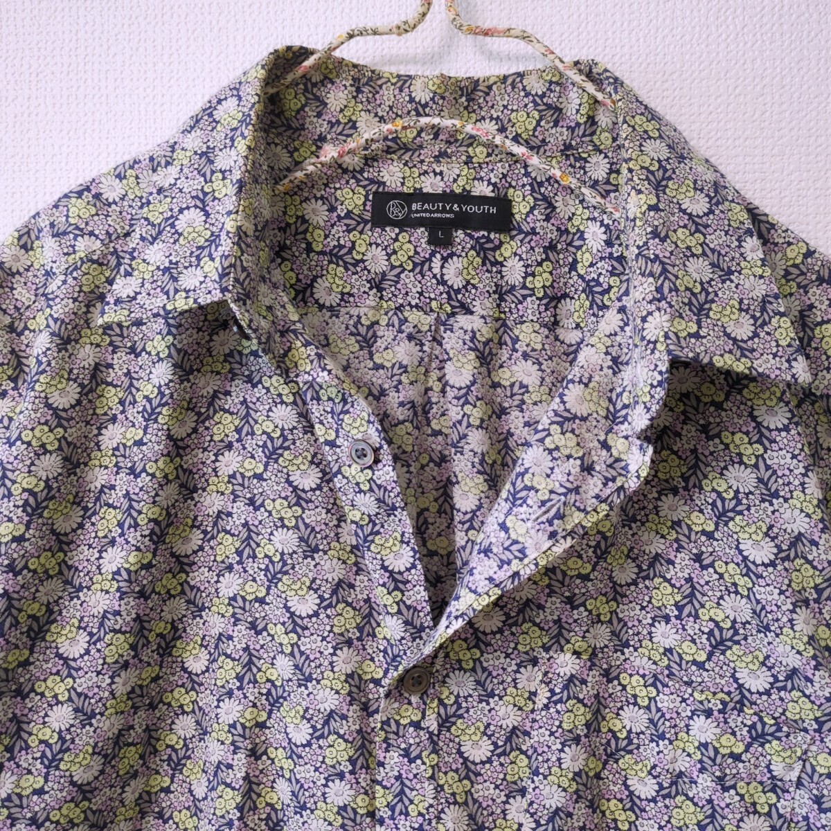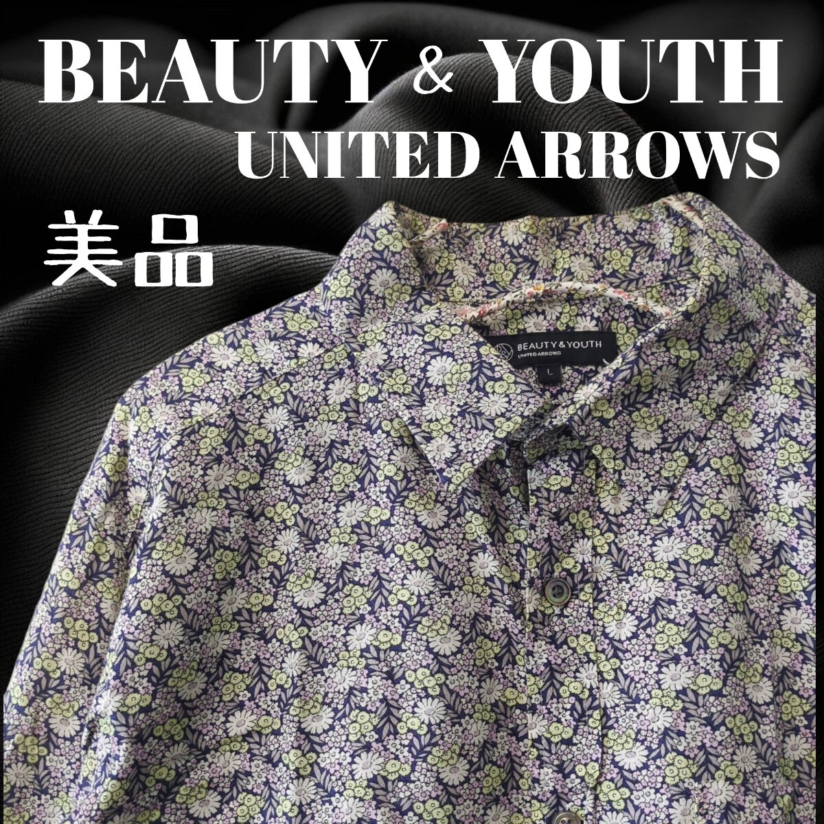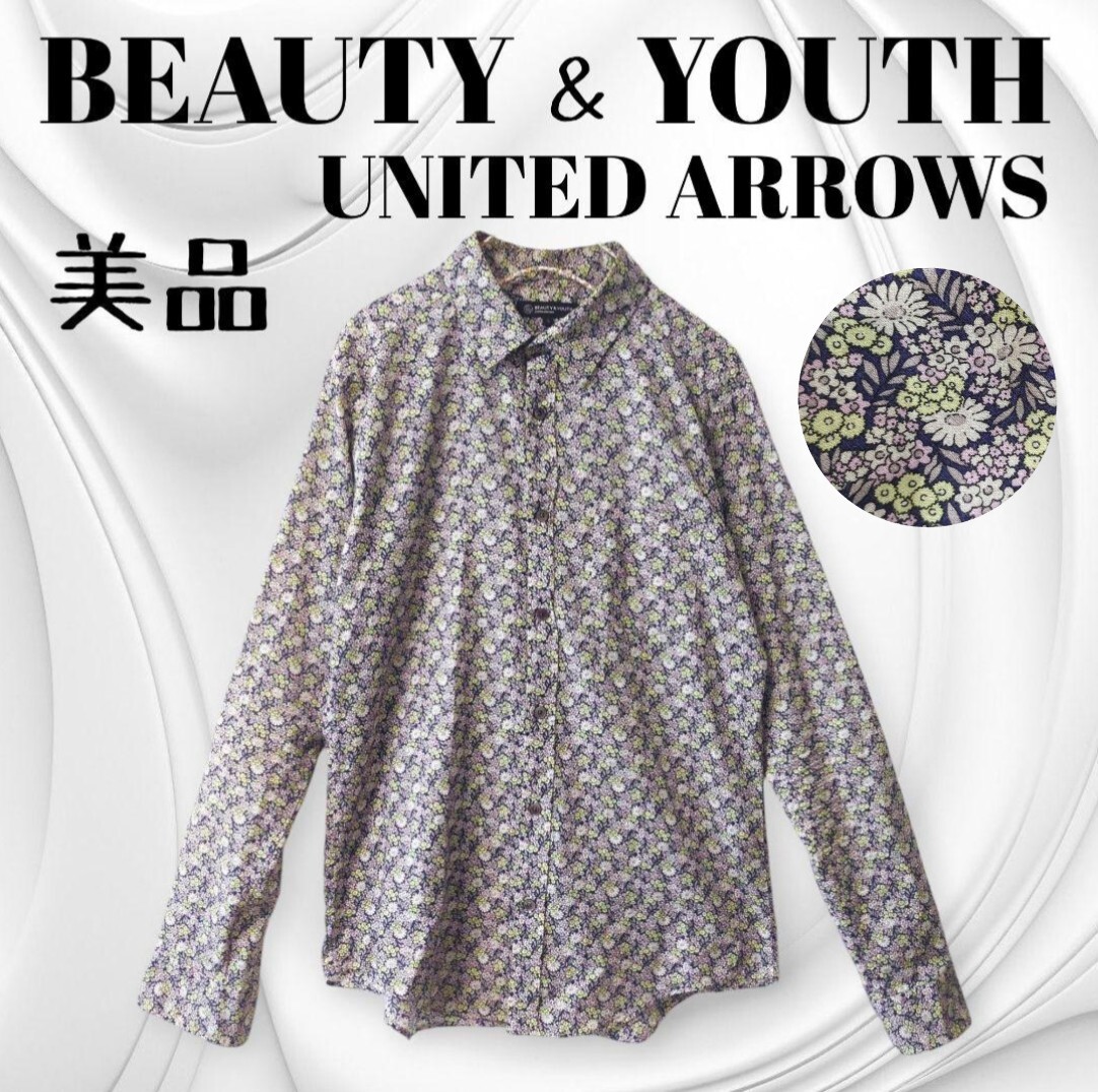 美品 BEAUTY & YOUTH UNITED ARROWS ビューティー&ユース ユナイテッドアローズ Lサイズ 小花柄 前開き長袖レギュラーシャツ