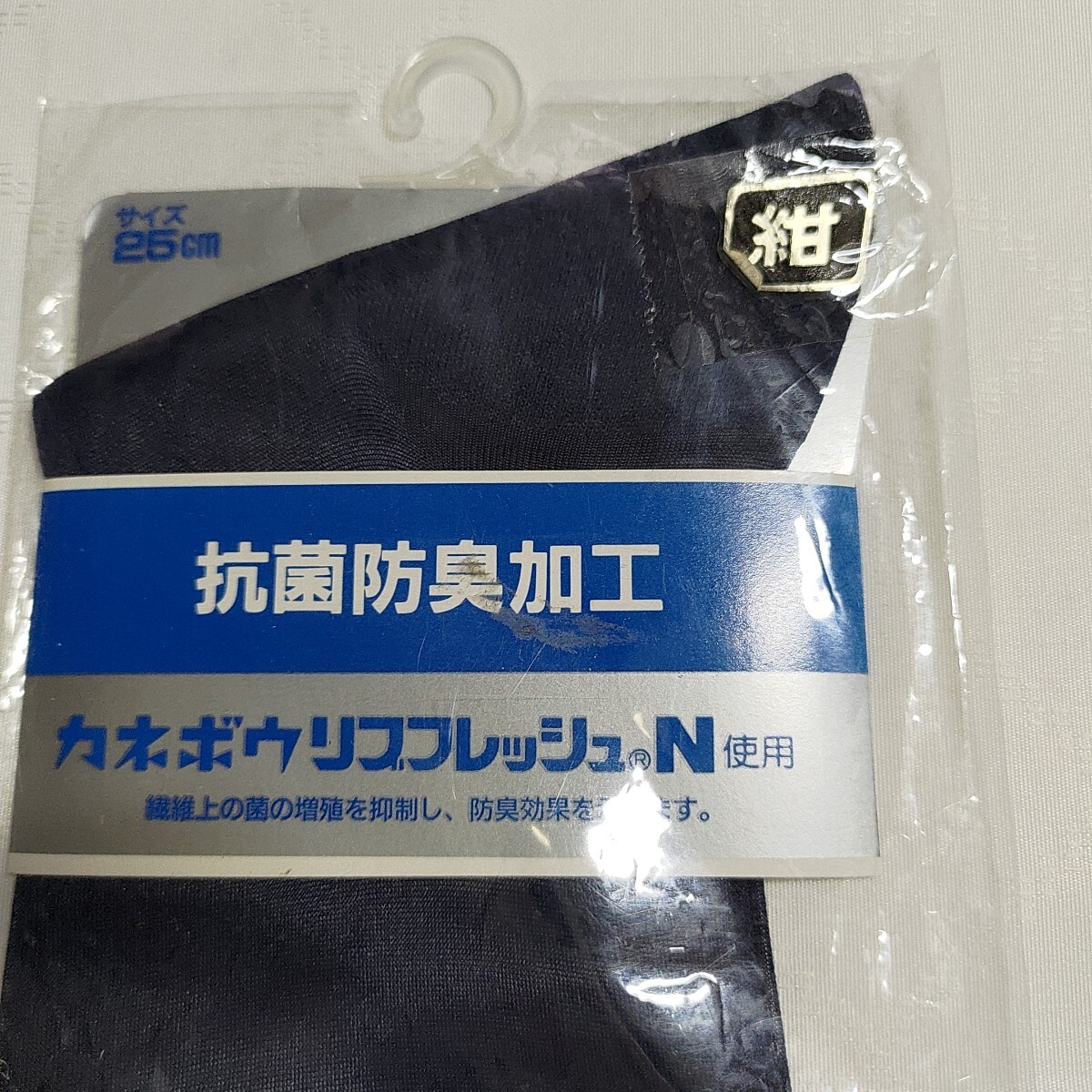 カネボウリフレッシュN使用 紳士用ハイソックス ナイロン100% サイズ 25cm カラー 紺 長期保管品ですシミや伸び等があるかもしれません、状態に関しては画像にあるものが全てとなりますので入札の参考ににお願いします。 広げて厳密な検品はしておりませんので、ご了承いただける方にお願いいたします。万一、内部に保管中のシミ・焼け等何がありましてもご返品・ご返金には対応できませんのでご理解いただける方のみ、ご入札・ご落札をお願い致します。画像確認での購入が納得いただけない方、店頭購入のような状態を希望の方や神経質な方の完璧を求める方入札はご遠慮ください | |||||
