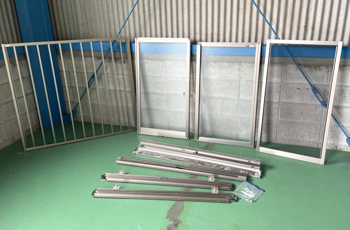 ◆モデルルーム展示品/三協アルミ/引き違い窓/単板ガラス/サッシ/2枚組/網戸付き/格子付き/2023年製◆AQ10
