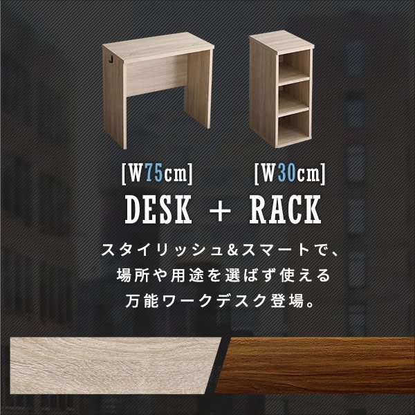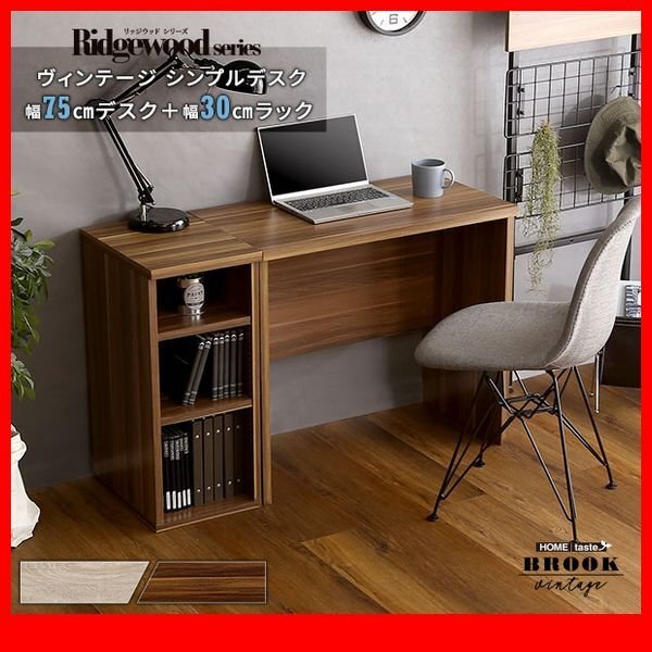 | 子どもから大人まで使えるリビングに合うヴィンテージシンプルデスクセット75cm幅、ラックは30cm幅! 教科書&ノートを広々置ける学習机に。 趣味や家事のワークスペースとしても使えます。 収納力もプラスしたい方にはラックがおすすめです。 奥行・高さは共通なので、どの幅(60、75、90cm幅)のデスクにもピッタリ合います。 便利な3段可動棚で入れたいものに合わせて棚を調整できます。 しっかりした厚みの天板はキズや書き跡に強いPVC仕様です。 デスクのサイドにはランドセルやバッグが掛けれるフック付きです。 デスクの背面にはライトやパソコンのコードを通せる隙間を作っているので、スッキリ収納できます。 |