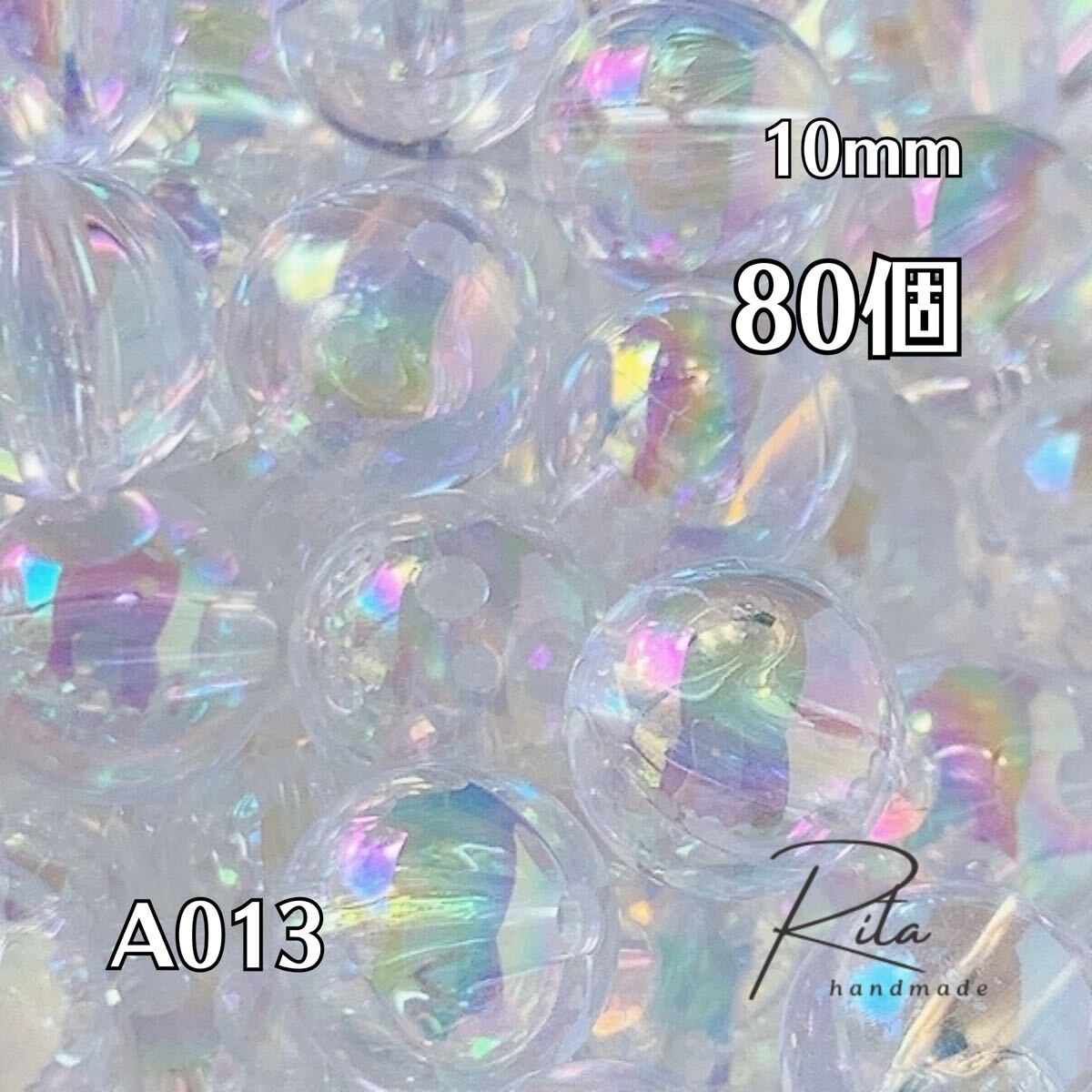 【80個】クリア アクリルクリアビーズ オーロラ加工 10mm 両穴 ハンドメイド アクセサリーパーツ