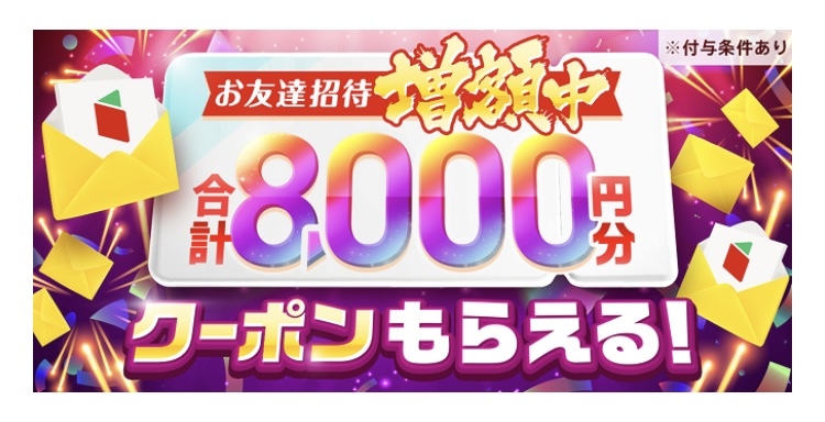 初めてmenuを利用する方が上記の紹介コードを入力するだけで8000円分のクーポンが貰えます。