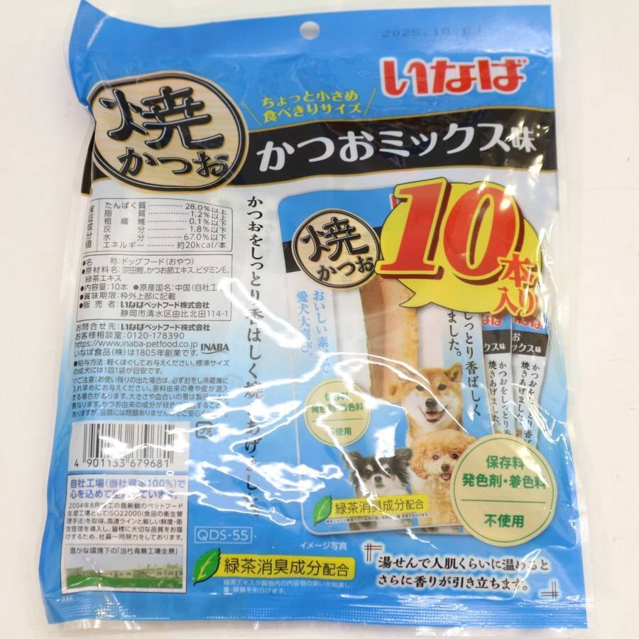 【賞味期限2025/10】いなば かつおミックス味 焼かつお 10本入り×5パックセット 犬用 おやつ ドッグフード◆268f30