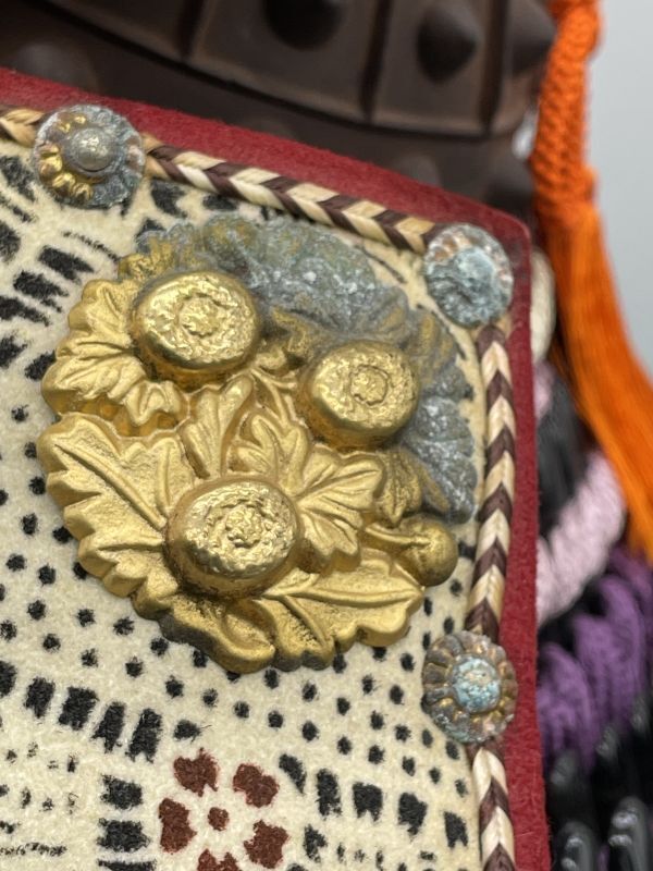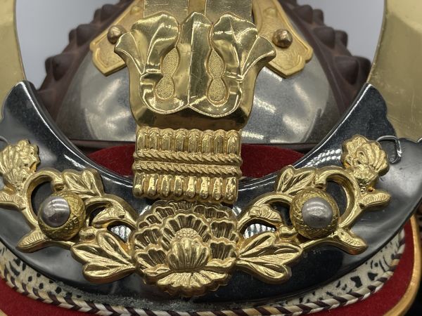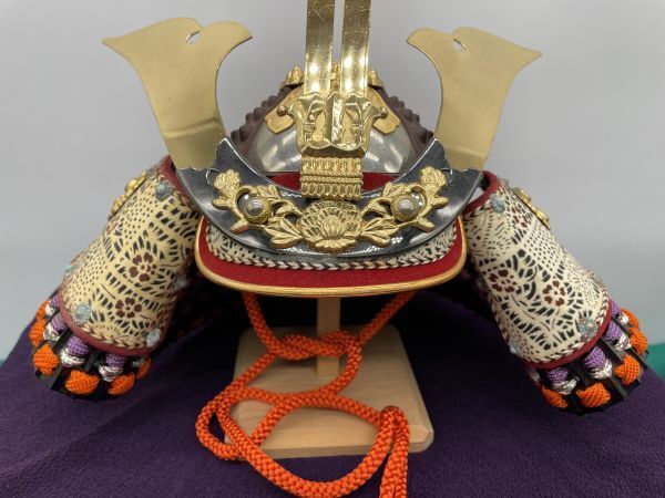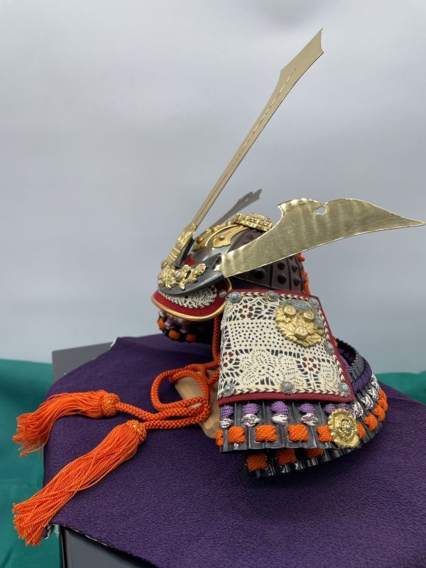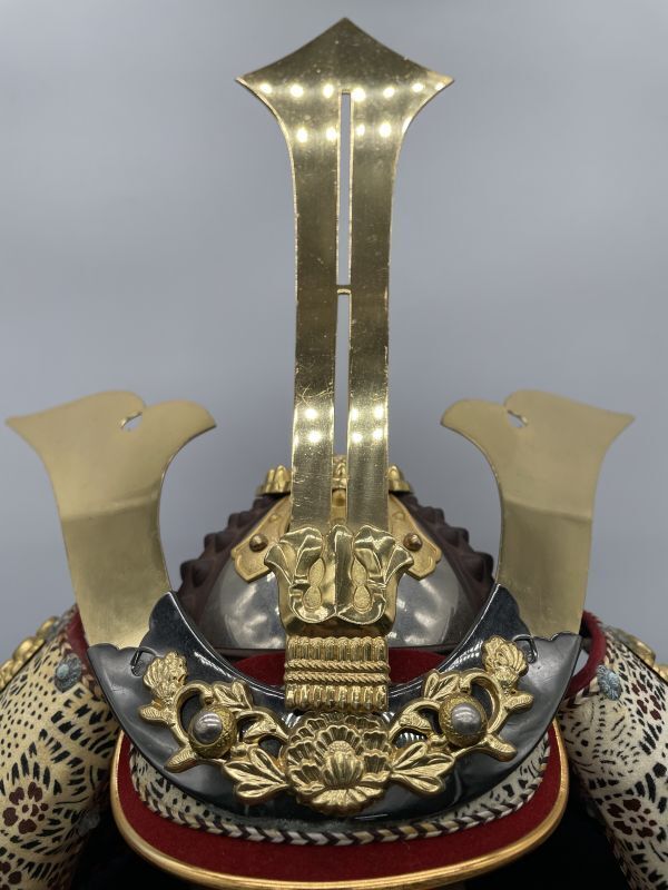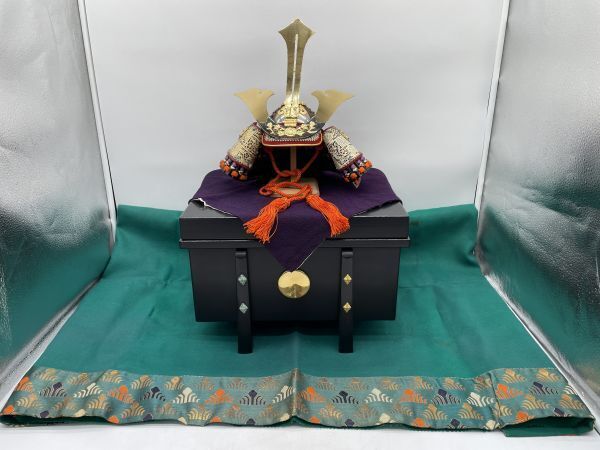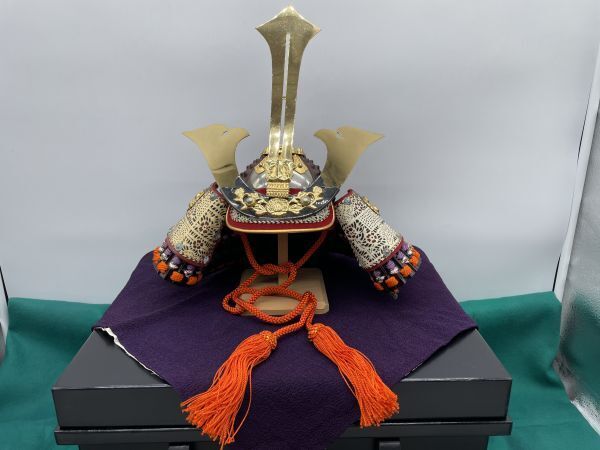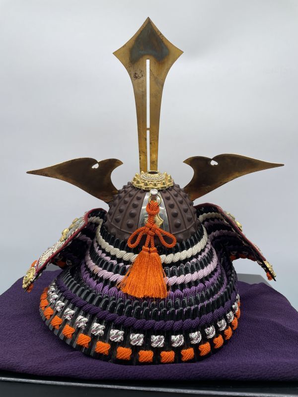 | 「もっと見る」へ画像追加★商品説明★ | 箱兼台座、敷布が付いています。 長期保管しておりましたので、布にシミ汚れ、兜の金属部にサビ汚れが見られます。 【兜サイズ】 約17×27×H28.5cm 重さ680g | ||||||||||||||||||||||||||||
