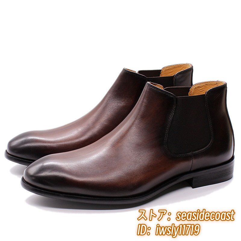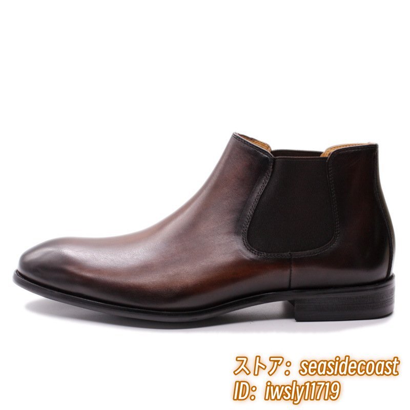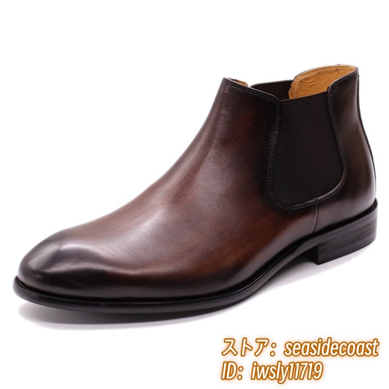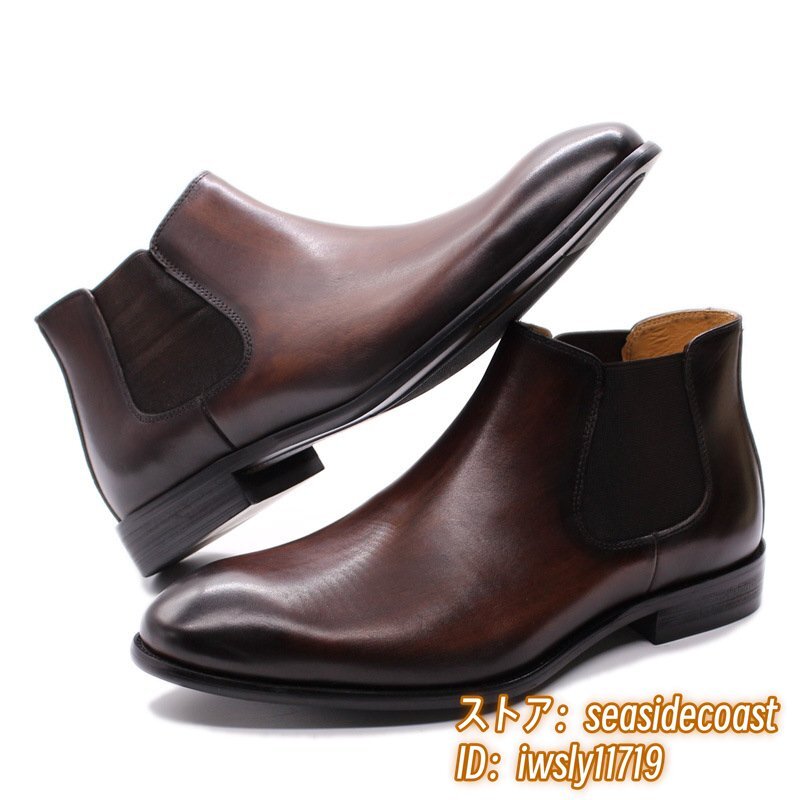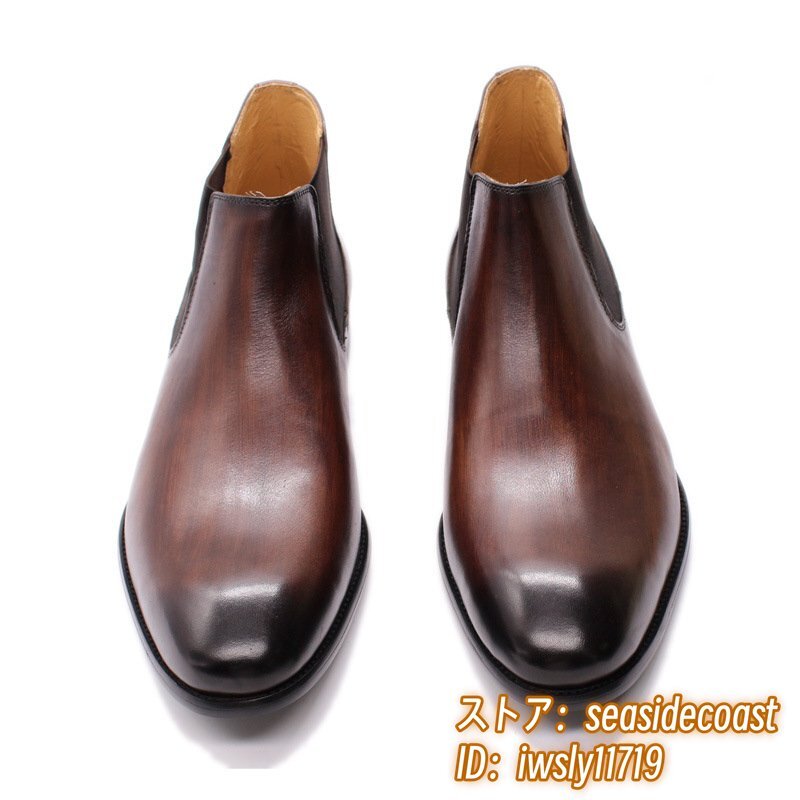 新品◆最高級 ショートブーツ メンズ 牛革 レザーブーツ ハイカット 職人手作り 本革 マーティンブーツ 皮靴 紳士靴 美品 珈琲色 24.5cm