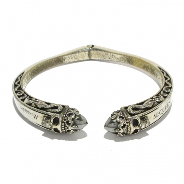 アレキサンダーマックイーン ALEXANDER McQUEEN バングル - 黒×シルバー スカル柄 アクセサリー(腕)
