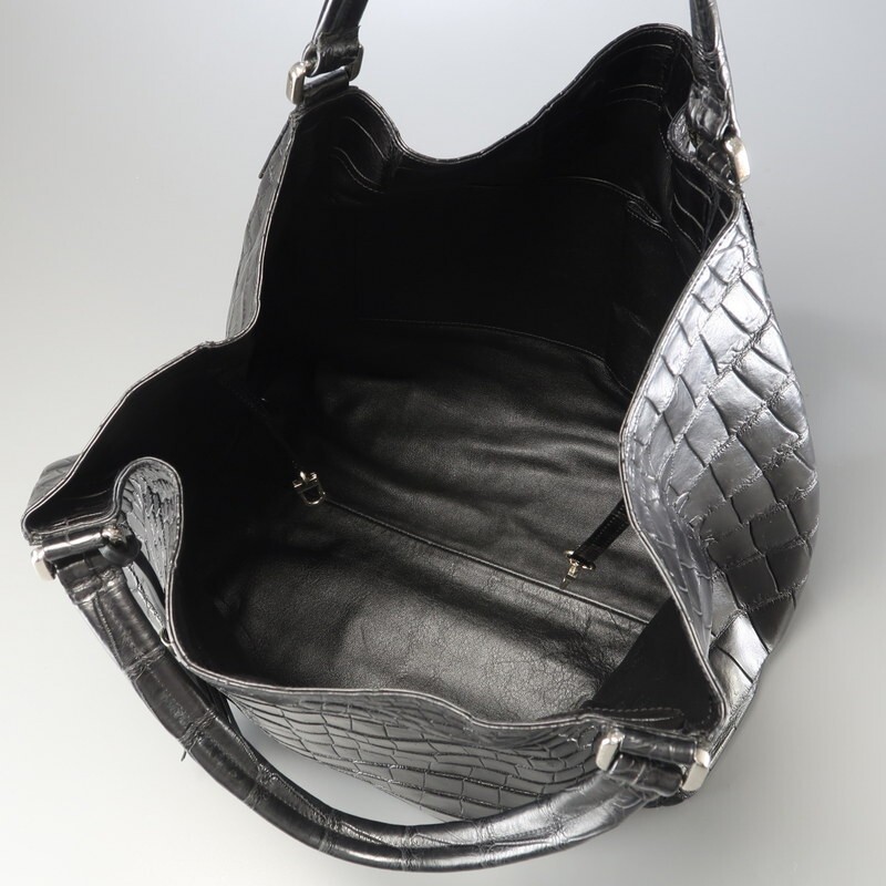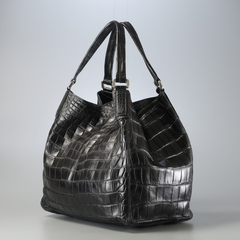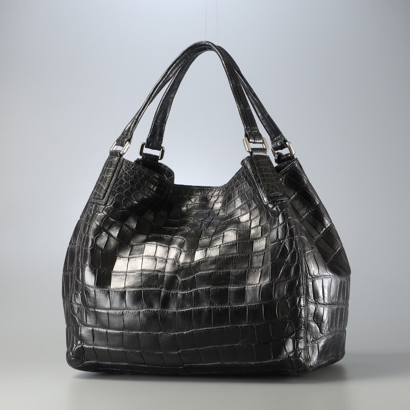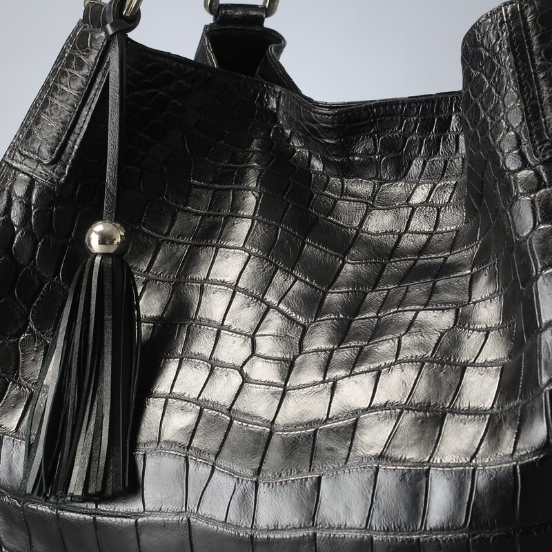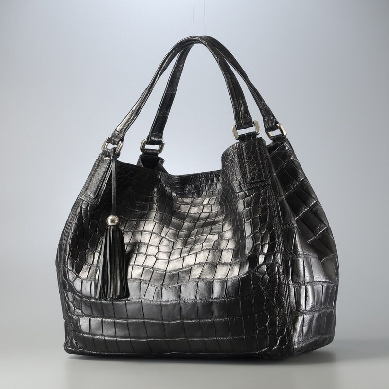 | GS2533△本ワニ革 マットクロコ センター取り クロコダイルレザー タッセルチャーム トートバッグ ショルダーバッグ/肩掛け 鞄 ブラック | |||