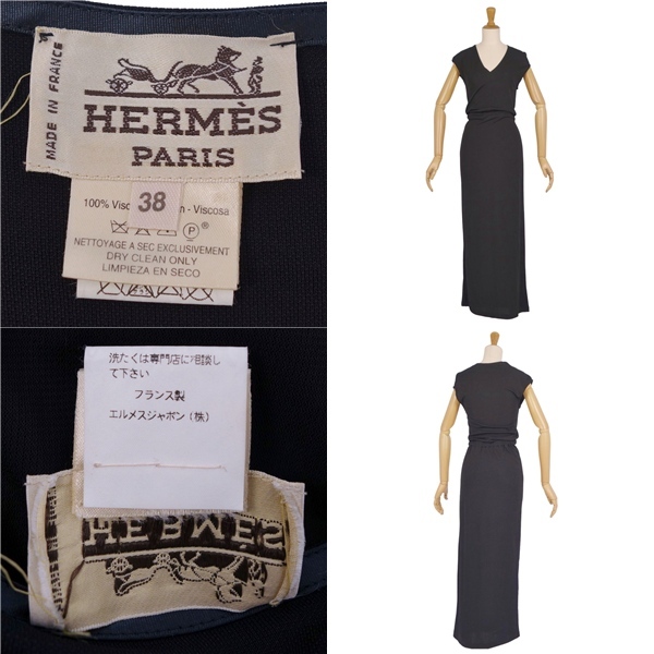 | 極美品 Vintage エルメス HERMES ワンピース ロングワンピース ノースリーブ レーヨン トップス レディース 38(M) 黒 |